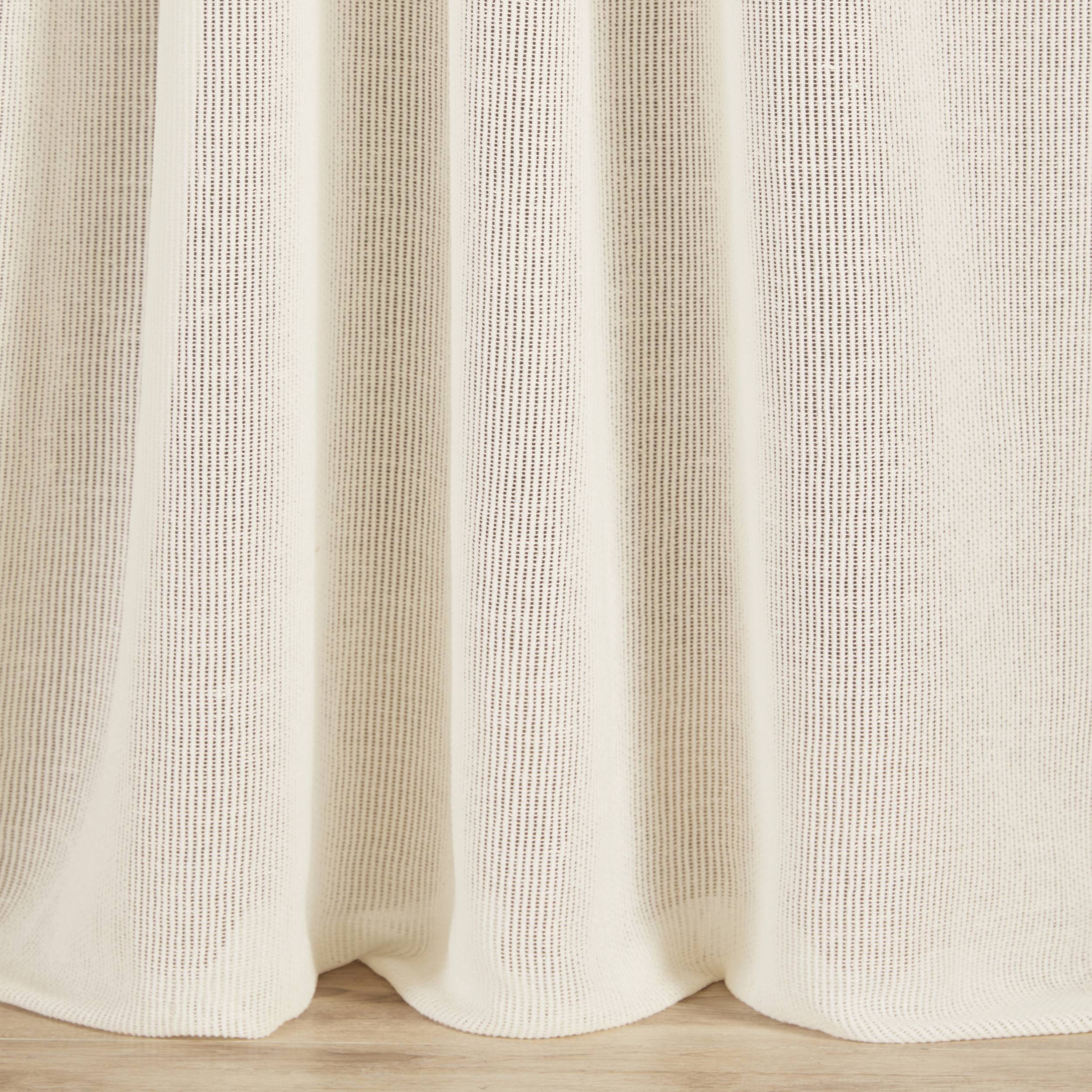 FAVOLA ist ein halbtransparentes, lockeres Drehergewebe mit einem Chenille-Schussgarn. Der flauschig weiche, raumhohe Vorhangstoff besteht aus einem Baumwoll-Leinen Mischgewebe. Die Farbpalette umfasst 8 gedeckte Farben.