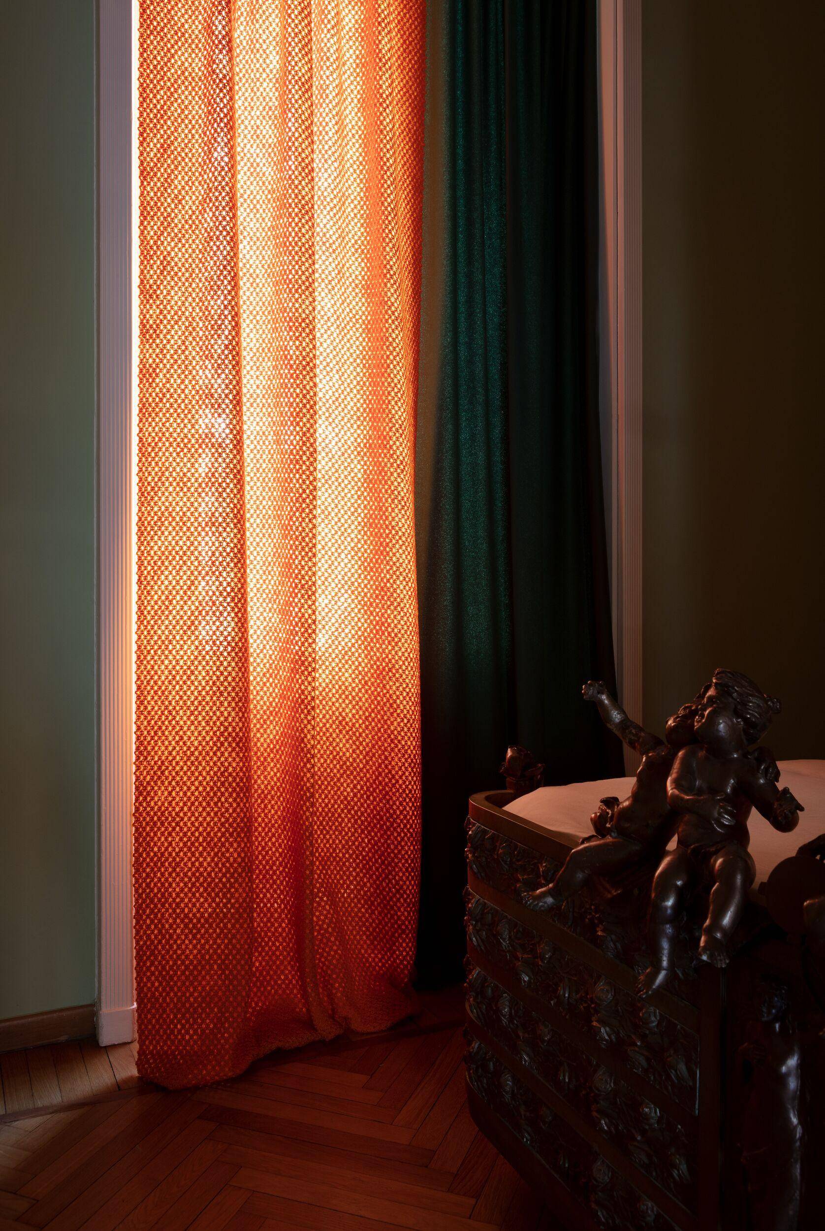 JUNGFRAU ist ein voluminöser, weicher Vorhang aus 100% Wolle. Die grobe Wirkware wird in 9 modischen Farben stückgefärbt. Der Vorhang JUNGFRAU lässt sich ideal mit dem Vorhangstoff EIGER kombinieren. Ramdane Touhami’s Farbkombinationen sind so harmonisch wie mutig.