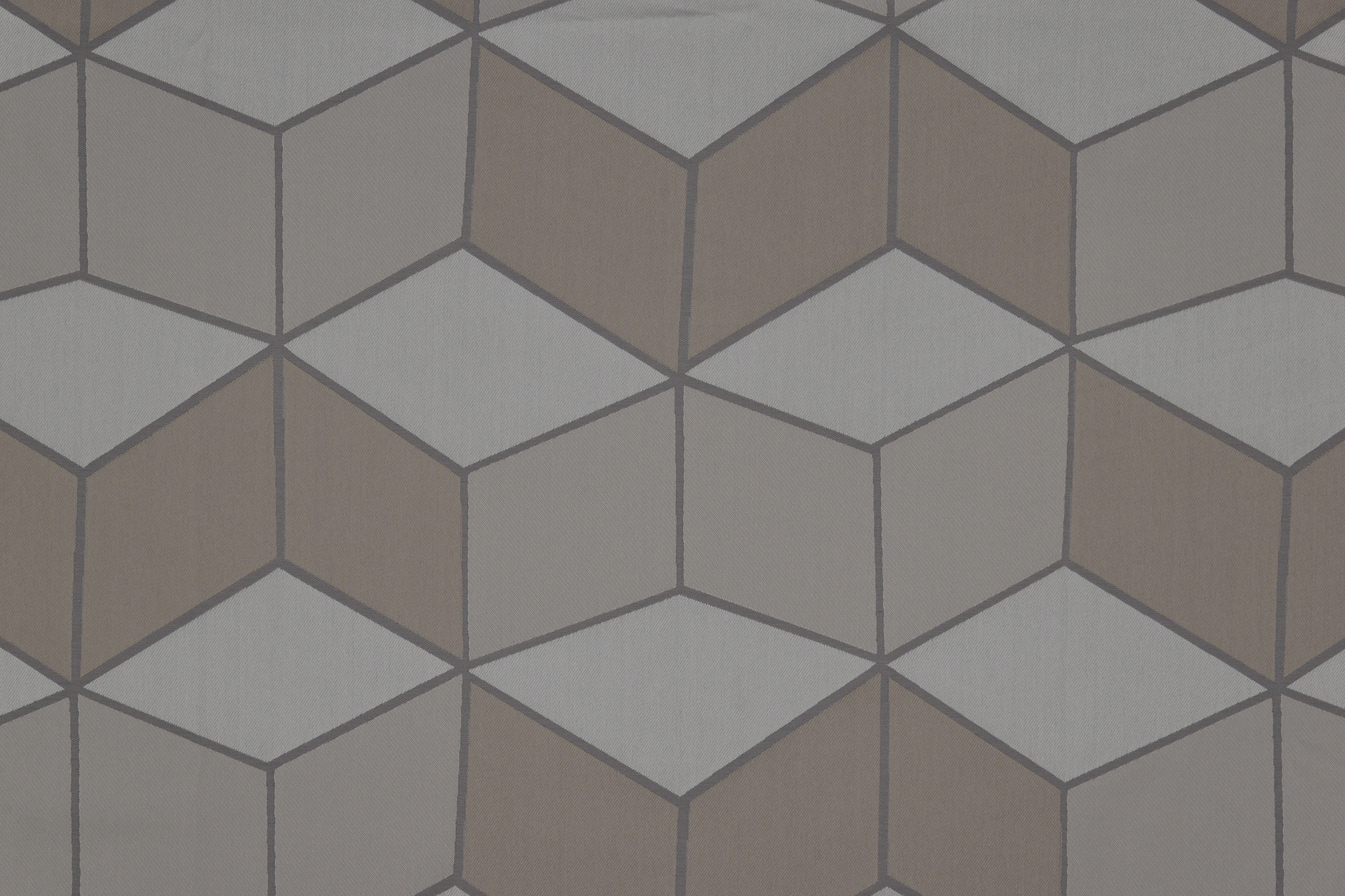 KALEIDO ist ein geometrischer Stoff mit Metallic-Effekt, der perfekt zu einem stylisch-modernen Ambiente passt. Das Design des extrabreiten Jacquard-Stoff ist von den geometrischen Mustern inspiriert, die sich bei einem Blick in ein Kaleidoskop offenbaren. Schimmernd-glänzende Parallelotope, gewoben in Atlas- und Köperbindungen, werden von matterem Garn konturiert.