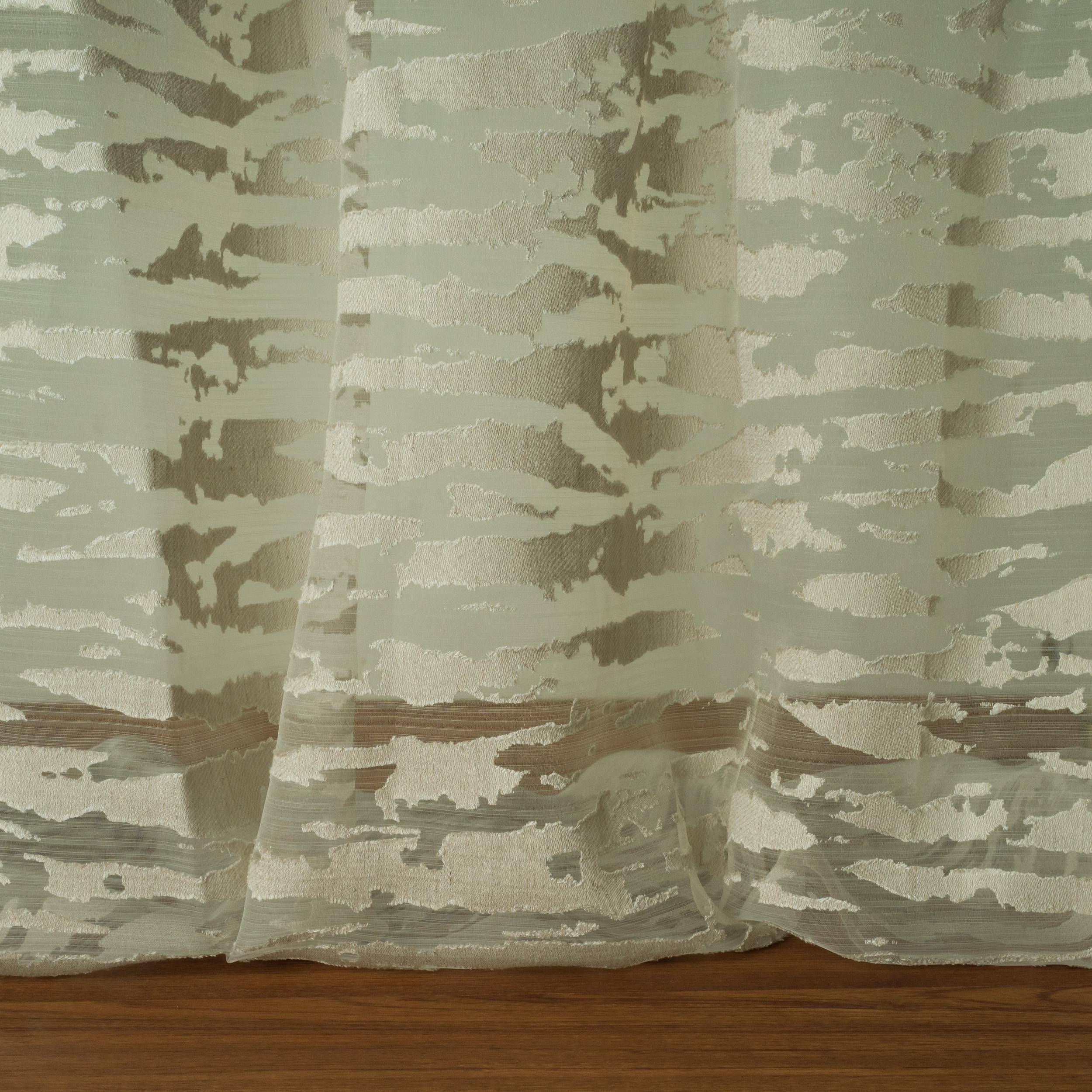 LANDSCAPE ist ein großflächiger Vorhangstoff aus einer Viskose-Leinenmischung, der eine abstrahierte Landschaft zeigt. Der Ausbrenner zeichnet sich durch ein organisch aufgelöstes Streifen-Muster aus, in der sich dichte und transparente Bereiche abwechseln. Im transparenten Bereich entsteht aufgrund der speziellen Kette, bei der die Fäden unregelmäßig angeordnet sind, eine feine horizontale Streifen-Optik. LANDSCAPE ist in fünf Farbvarianten erhältlich: zwei klassische Naturtöne sowie drei moderne Farbstellungen mit spannenden Farbkontrasten.