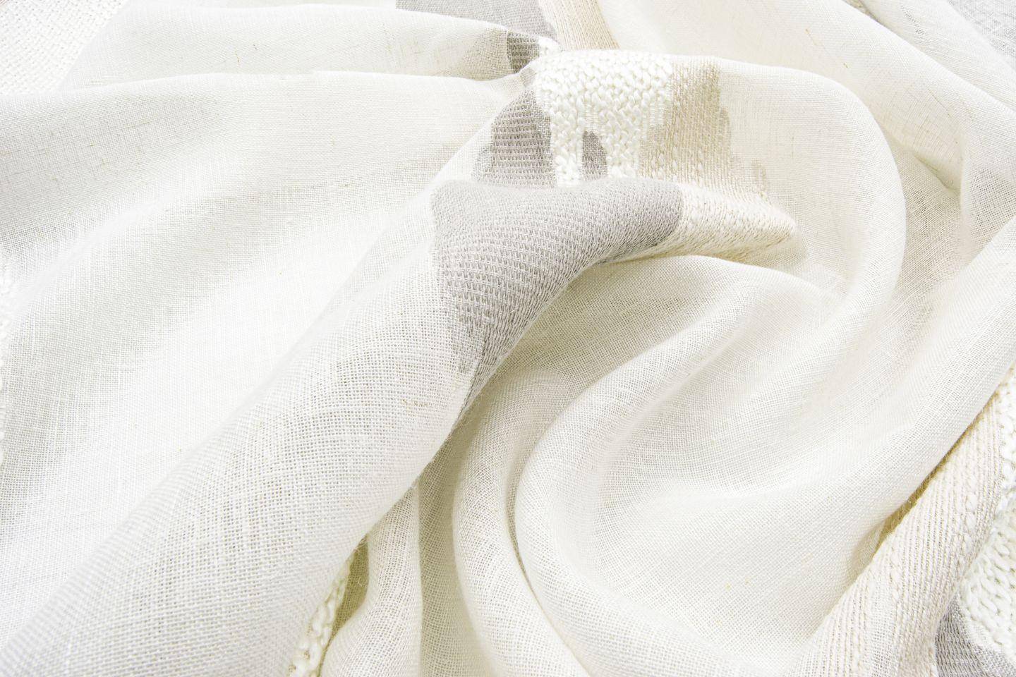 MONTERREY ist ein raumhoher Dekostoff in Scherli-Technik mit einem großzügigen abstrakten Dessin. Es erinnert an von der Decke hängende Seile. Die unterschiedlichen Garne, von sehr voluminös bis fein, und die Farbpalette bestehend aus natürlichen Tönen, welche auch eine Variante mit Safran-Orange beinhaltet, unterstreichen den County-Look dieses Gewebes.