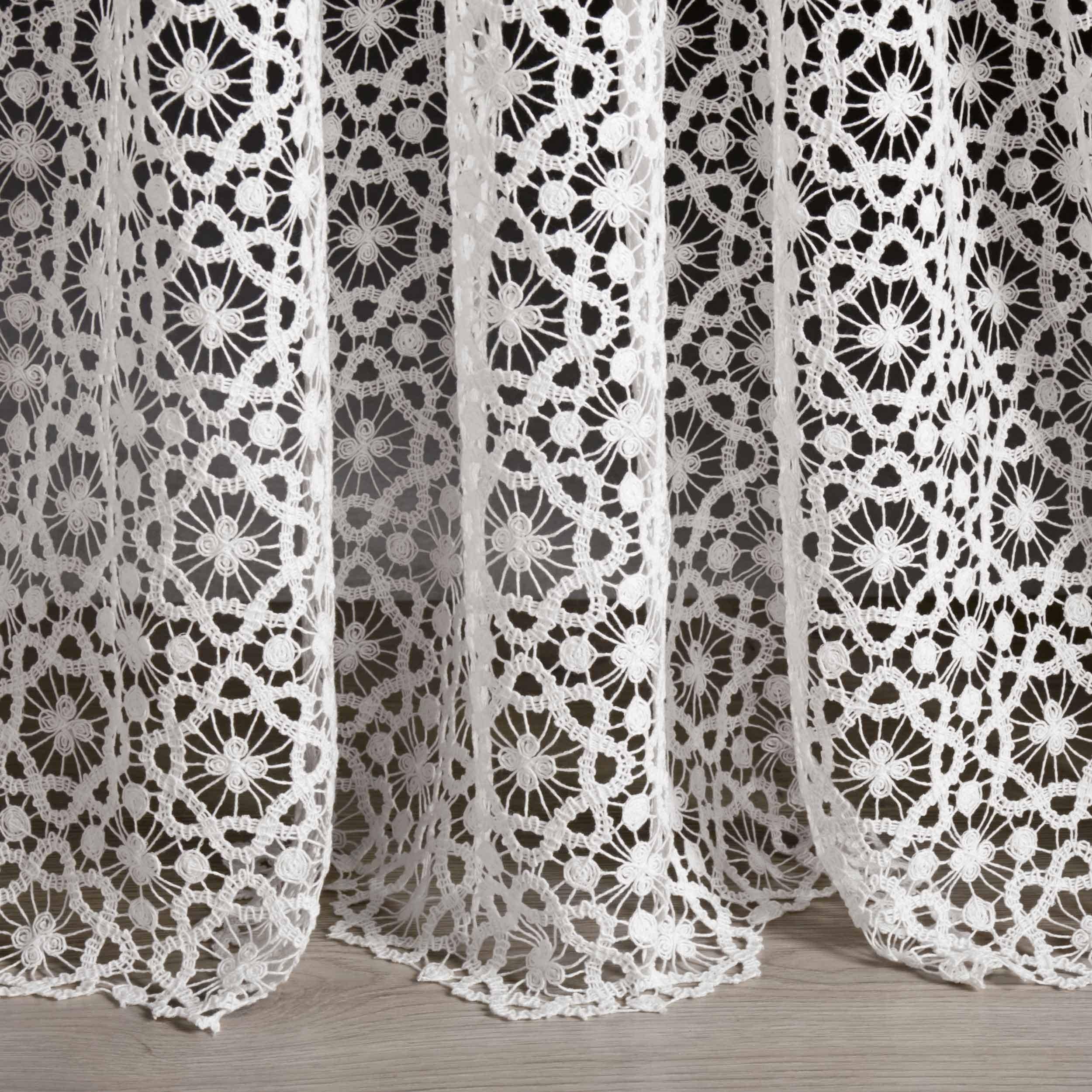 MURANO ist eine raumhohe Makramee Spitze. Makramee ist eine traditionelle, aus dem Orient stammende Knüpftechnik zur Herstellung von Textilien. MURANO interpretiert diese Technik neu und entwickelt sie dank modernster Technologie zu einem neuartigen Vorhang weiter. Wir empfehlen eine weich fallende, auf den Boden aufliegende Konfektion. Neben dem klassischen Weiß ist MURANO auch in einem modernem Beige und Grau erhältlich.