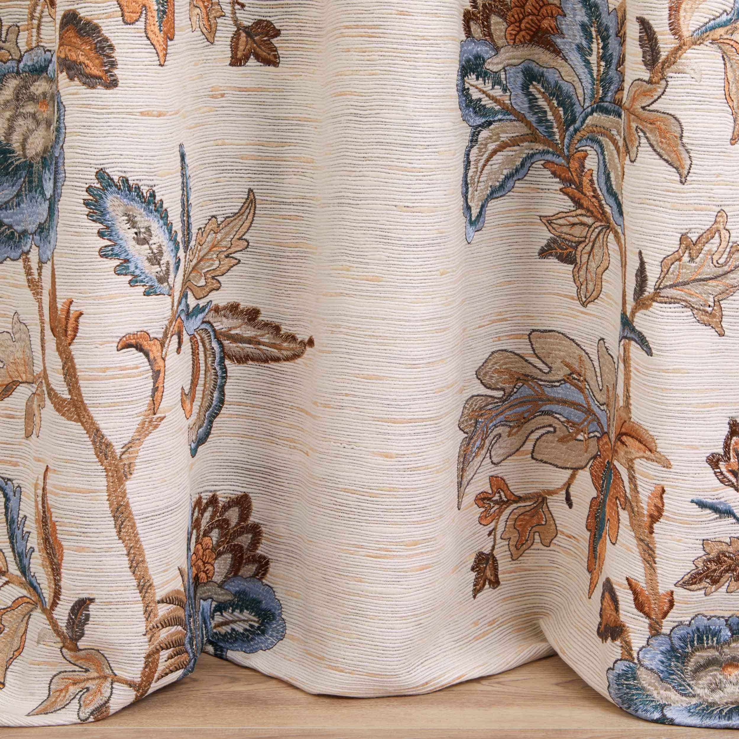 PEONY ist ein auf einer exquisiten, handgewebten wie handgesponnenen Rohseiden-Mischung bestickter Vorhangstoff. Dieses hochwertige Naturprodukt weist eine dem Material entsprechend charakteristische unregelmäßige Struktur auf. Das voluminöse Schussgarn wird kaum von der zarten Kette verdeckt und bildet einen besonders schönen Untergrund für die daraufliegende filigrane Pfingstrosen Stickerei. PEONY ist in 3 Farbstellungen erhältlich. Es empfiehlt sich, den Vorhangstoff gefüttert einzusetzen.
