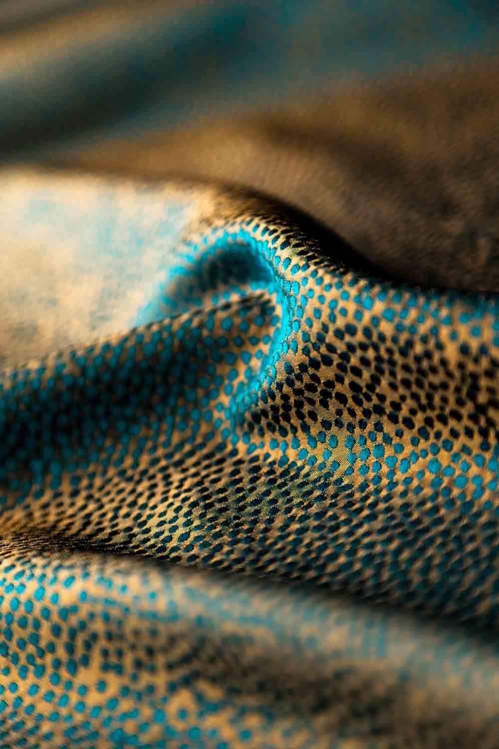 PHOENIX setzt als Inbegriff luxuriöser Seidenkreationen die lange Tradition Christian Fischbachers mit diesem hochwertigen Material fort. Feine Seiden-Kettfäden in sehr hoher Dichte formen schimmernde Punkte, die sich spielerisch von einem glänzenden Untergrund abheben. In seiner Zweifarbigkeit bleibt der charismatische Entwurf trotz der Lebendigkeit ausgewogen, die Haptik wirkt kompakt und gleichzeitig anschmiegsam. Ein aufwendiges Finish mit Wasserdampf verleiht PHOENIX den charakteristischen sanften Schimmer und eine zurückhaltende Kräuselung, beides Ausdruck seiner unvergleichlichen Modernität. Christian Fischbacher lässt diesen Seidenstoff in einer der besten und technologisch fortschrittlichsten Webereien Indiens fertigen, die den Fertigungsanspruch des Unternehmens seit vielen Jahren umzusetzen versteht.