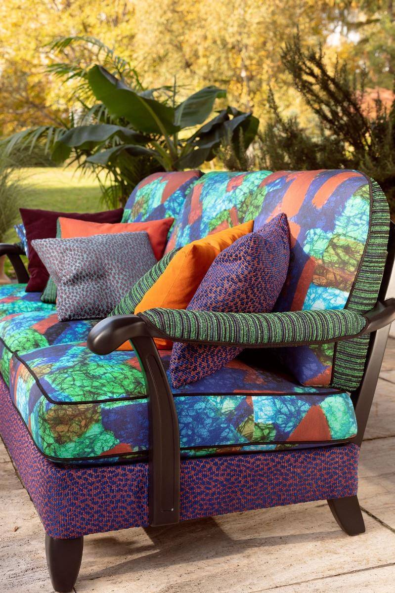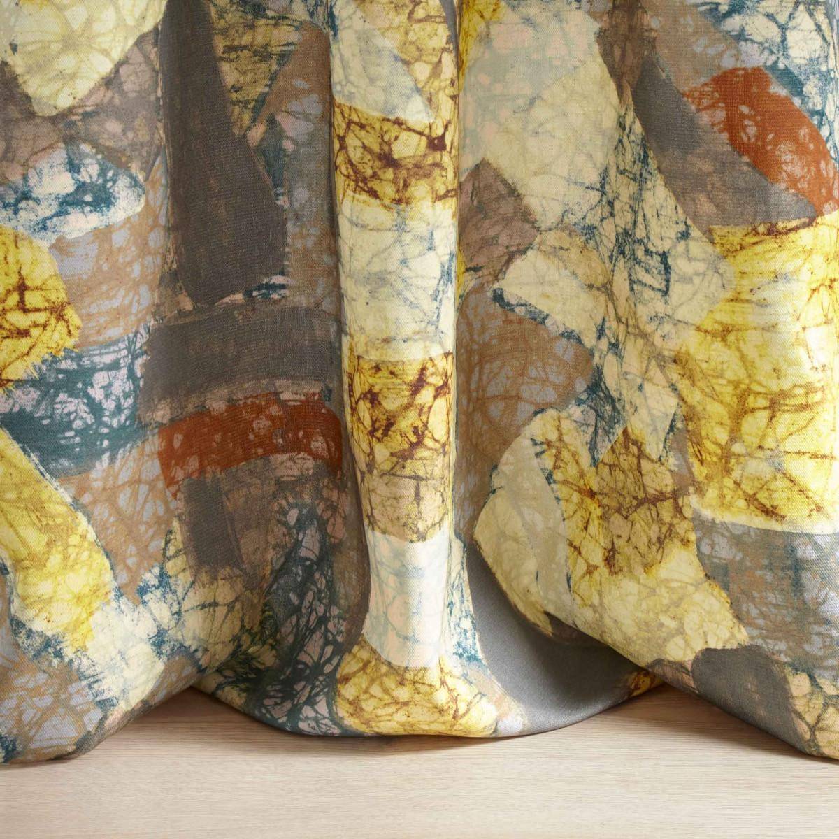 POOL ist dynamisch, farbenfroh und selbstbewusst. Inspiriert von den afrikanischen Waxprints und der Mode entsteht ein Abbild des prachtvollen afrikanischen Kontinents. Das handgemalte Dessin ist im eigenen Atelier entstanden und verbindet erfrischend neue Farbharmonien mit einem komplexen Layering von grafischen Formen und Batikstruktur. Das Dessin ist auf voller Breite im Halbversatz angelegt und sowohl in einer von Terrakotta und Blautönen geprägten, wie auch in einer aus sanften natürlichen Erdtönen bestehenden Farbstellung erhältlich. POOL verbreitet einfach gute Laune und ist sowohl als Vorhang wie auch als leichter Bezugsstoff einsetzbar. Die zu 100 % aus Acryl bestehende Qualität überzeugt durch eine hohe Lichtechtheit und wird durch die Teflon-Beschichtung wasser- und schmutzabweisend.