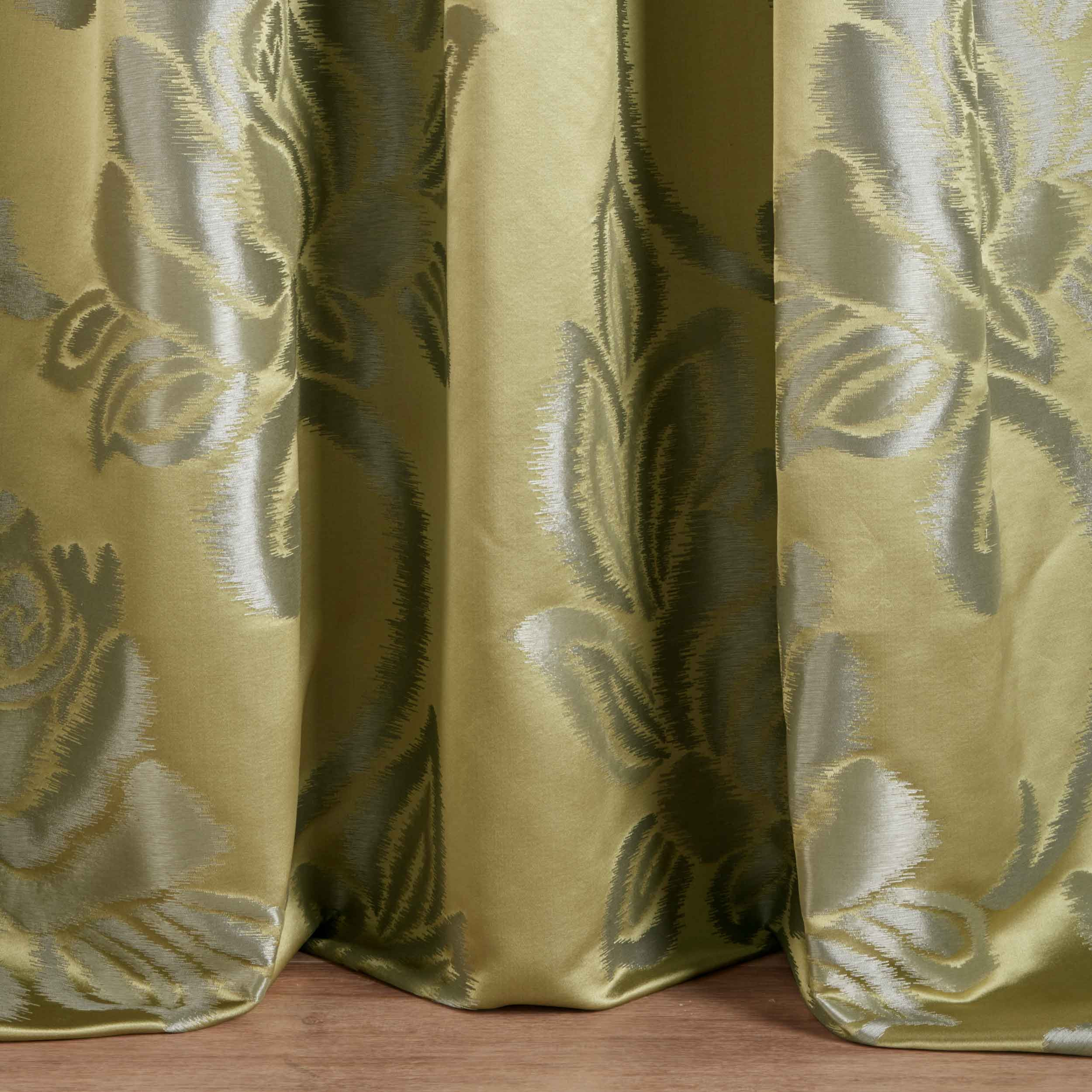 ROSALIA ist ein opulenter Damast mit großzügigem Rankenmotiv. Das Motiv zeigt zudem einen gewebten Chine Effekt. Dieser simuliert den Verzug in Kettrichtung wie er im Kettdruck entstehen würde. Der seidige Schimmer im Grund und das metallisch glänzende Rosenmotiv wirken reich und üppig. Das Design ist in 8 sowohl elegant neutralen als auch opulenten Farben erhältlich.