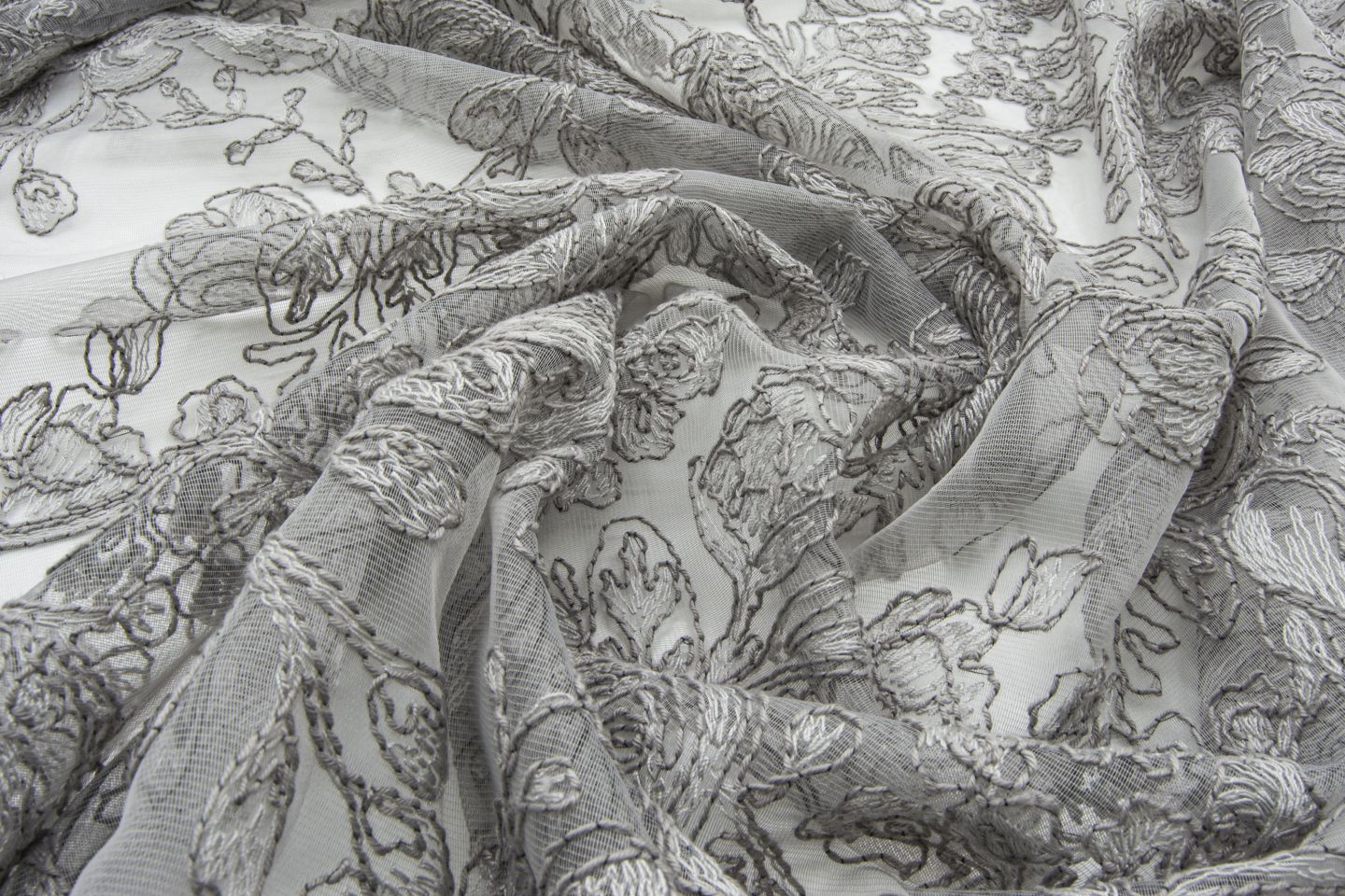 ROSAS ist die Trendversion einer romantischen Stickerei. Über die gesamte Höhe wurde der Dreher-Organza mit zweifarbigen Rosen bestickt. Die elegante Farbpalette umfasst zahlreiche raffinierte Farbvarianten auf weißem oder schwarzem Hintergrund.