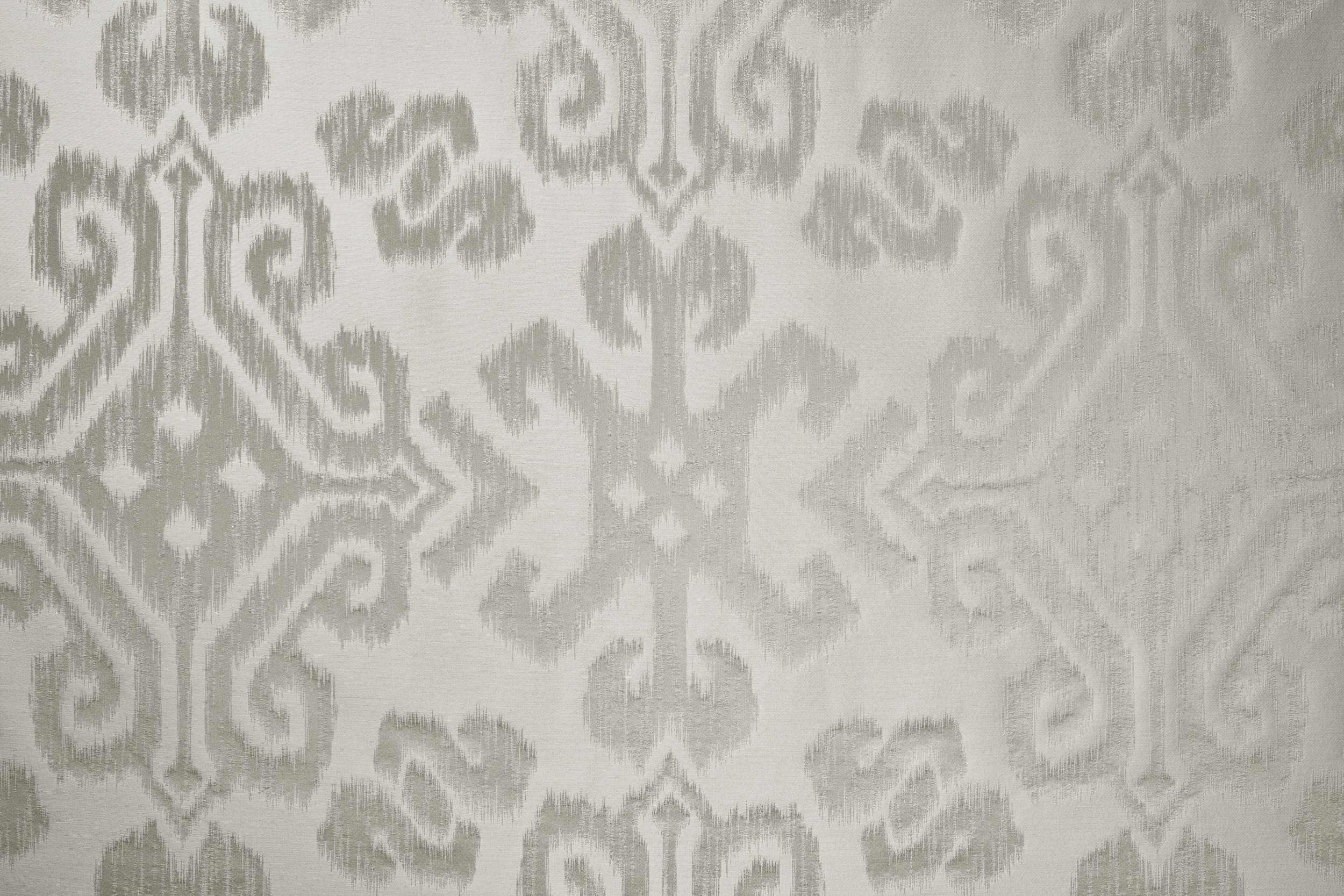 Sogdia von Fischbacher 1819 ist ein Vorhangstoff mit einem reichhaltigen, ornamentalen Damastmuster, das in Ikat-Technik interpretiert wurde. Die Jacquard-Webart erzeugt ein subtiles Spiel von matten und glänzenden Bereichen und verleiht der Oberfläche in jedem Licht eine tiefe und lebendige Ausstrahlung. Der Stoff ist in 10 Farben erhältlich, von dezenten Naturtönen bis hin zu kräftigen und ausdrucksstarken Farben. Dieser Jacquardstoff ist ideal für klassische und moderne Interieurs, in denen Textur, Farbtiefe und eine edle Optik im Vordergrund stehen.