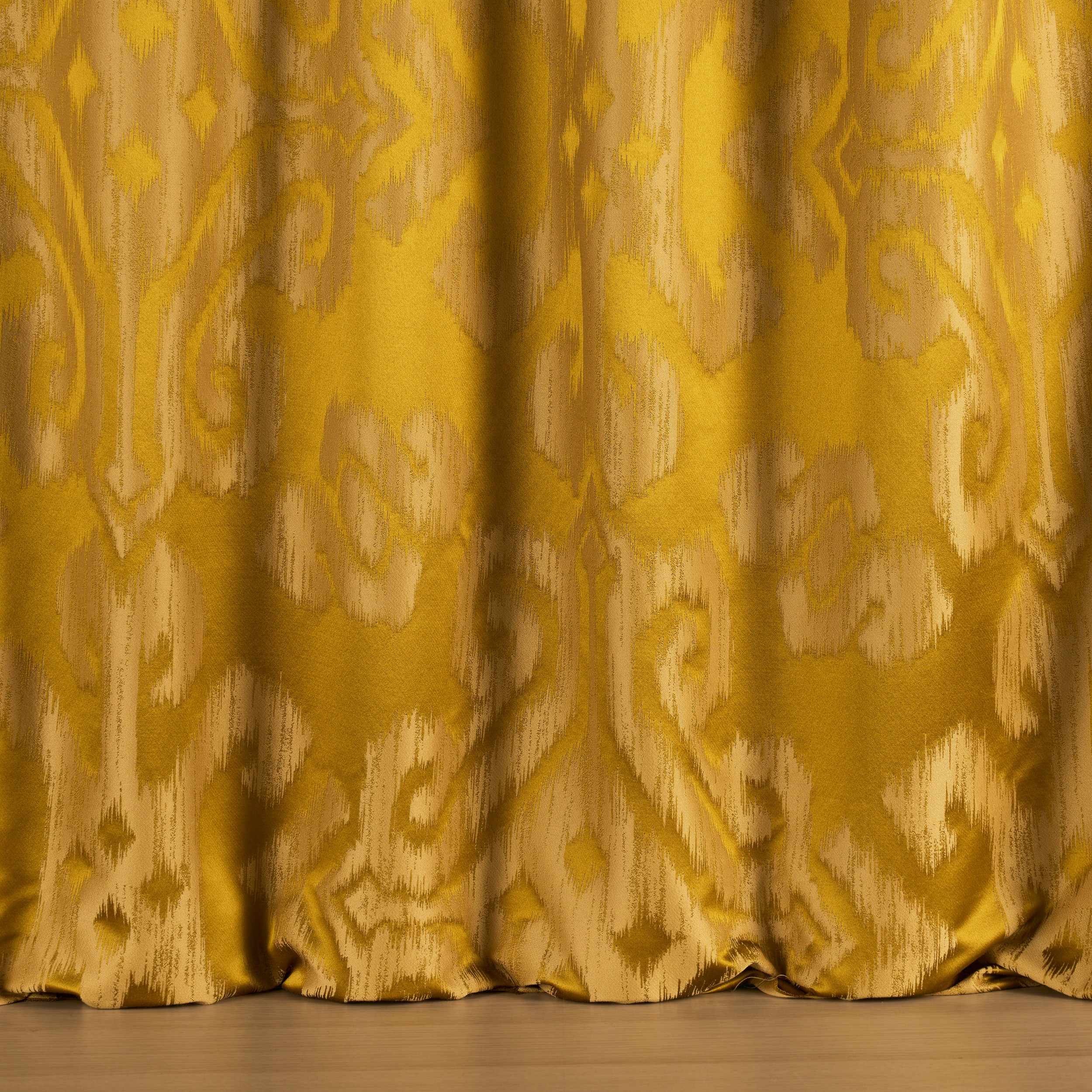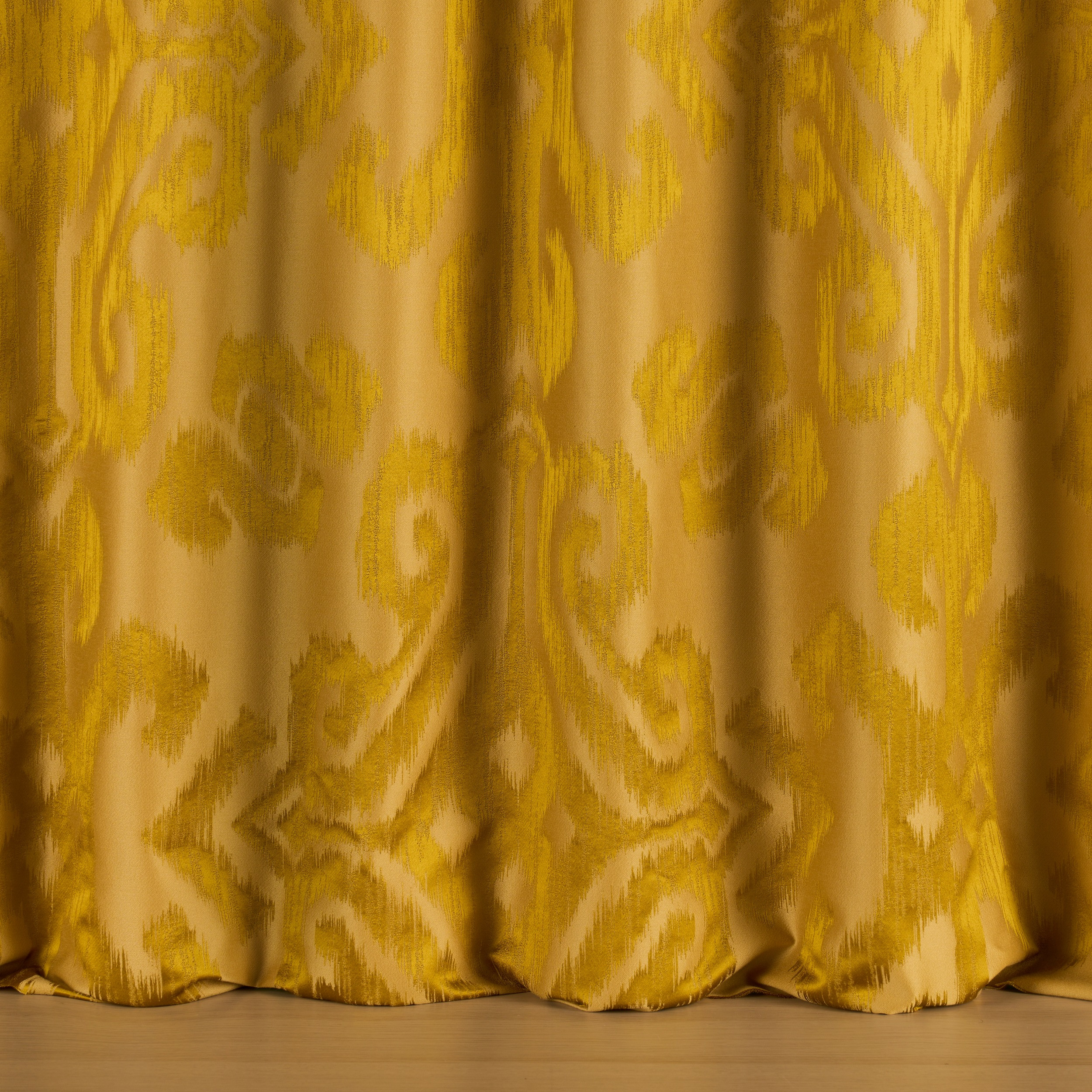 Sogdia von Fischbacher 1819 ist ein Vorhangstoff mit einem reichhaltigen, ornamentalen Damastmuster, das in Ikat-Technik interpretiert wurde. Die Jacquard-Webart erzeugt ein subtiles Spiel von matten und glänzenden Bereichen und verleiht der Oberfläche in jedem Licht eine tiefe und lebendige Ausstrahlung. Der Stoff ist in 10 Farben erhältlich, von dezenten Naturtönen bis hin zu kräftigen und ausdrucksstarken Farben. Dieser Jacquardstoff ist ideal für klassische und moderne Interieurs, in denen Textur, Farbtiefe und eine edle Optik im Vordergrund stehen.