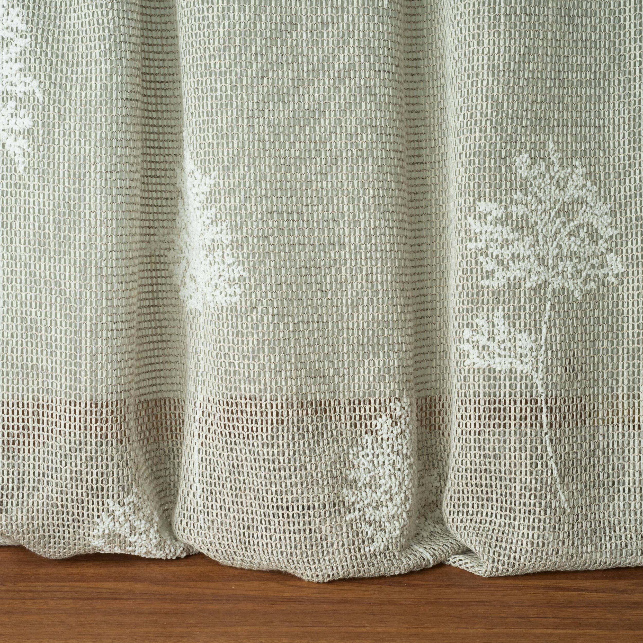 SOGNO PRINT ist ein halbtransparentes Gewebe in doppelter Breite, welches mit einem Schaumdruck bedruckt ist und ein florales, romantisches Design mit kleinen Zweigen zeigt. Das Zweigmotiv ist auf dem 3m hohen Panel im unteren Bereich dicht verteilt und wird nach oben immer offener. Grundlage des Drucks ist SOGNO UNITO, der in Marquisette Technik gewebt ist und eine grobe Wabenstruktur hat.