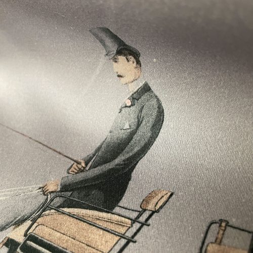 Das stilvolle Muster zeigt historische Pferdekutschen, die durch die majestätische Parklandschaft von Aranjuez, der einstigen Königsstadt südlich von Madrid, fahren. Dieses Motiv verleiht dem Stoff eine klassische, fast erzählerische Note – ideal für hochwertige Vorhänge, Kissenbezüge, Sitzmöbel oder Wandbespannungen. Aranjuez - die köngliche Sommer Residenz südlich von Madrid.