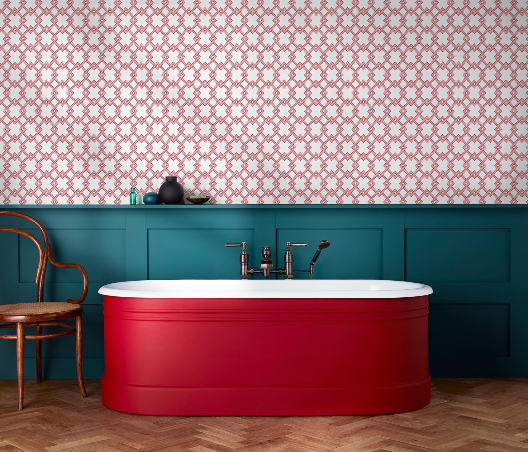 The Bound wallpaper from the Librería collection by Gastón y Daniela features a clearly structured pattern of interwoven squares - a motif reminiscent of textile braids or stylized lattices. The graphic arrangement creates a regular yet exciting surface in which each shape appears to be connected to the next. The consistent repetition creates a harmonious rhythm that lends the room visual depth without being obtrusive. The slightly iridescent printing technique makes the motif appear lively and handcrafted