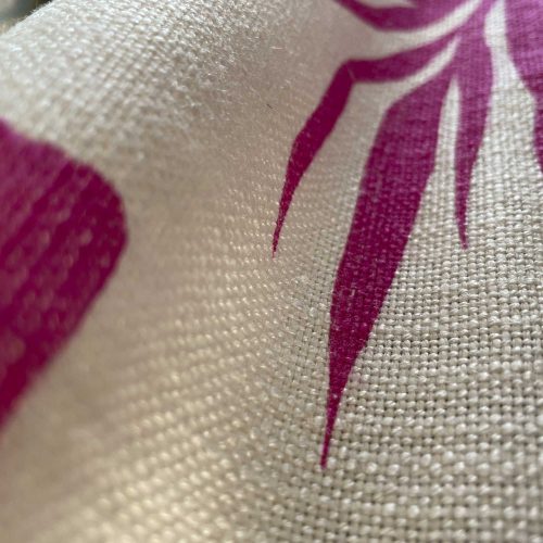 Die Oberfläche begeistert mit natürlicher Leinenstruktur und einem detailreichen Palmwedel-Design, das tropisches Flair in Ihre Einrichtung bringt. Bei Villakontor® online erhältlich, kombiniert dieser Stoff kunstvollen Druck mit hoher Funktionalität – perfekt für Vorhänge, Kissen oder Polstermöbel.