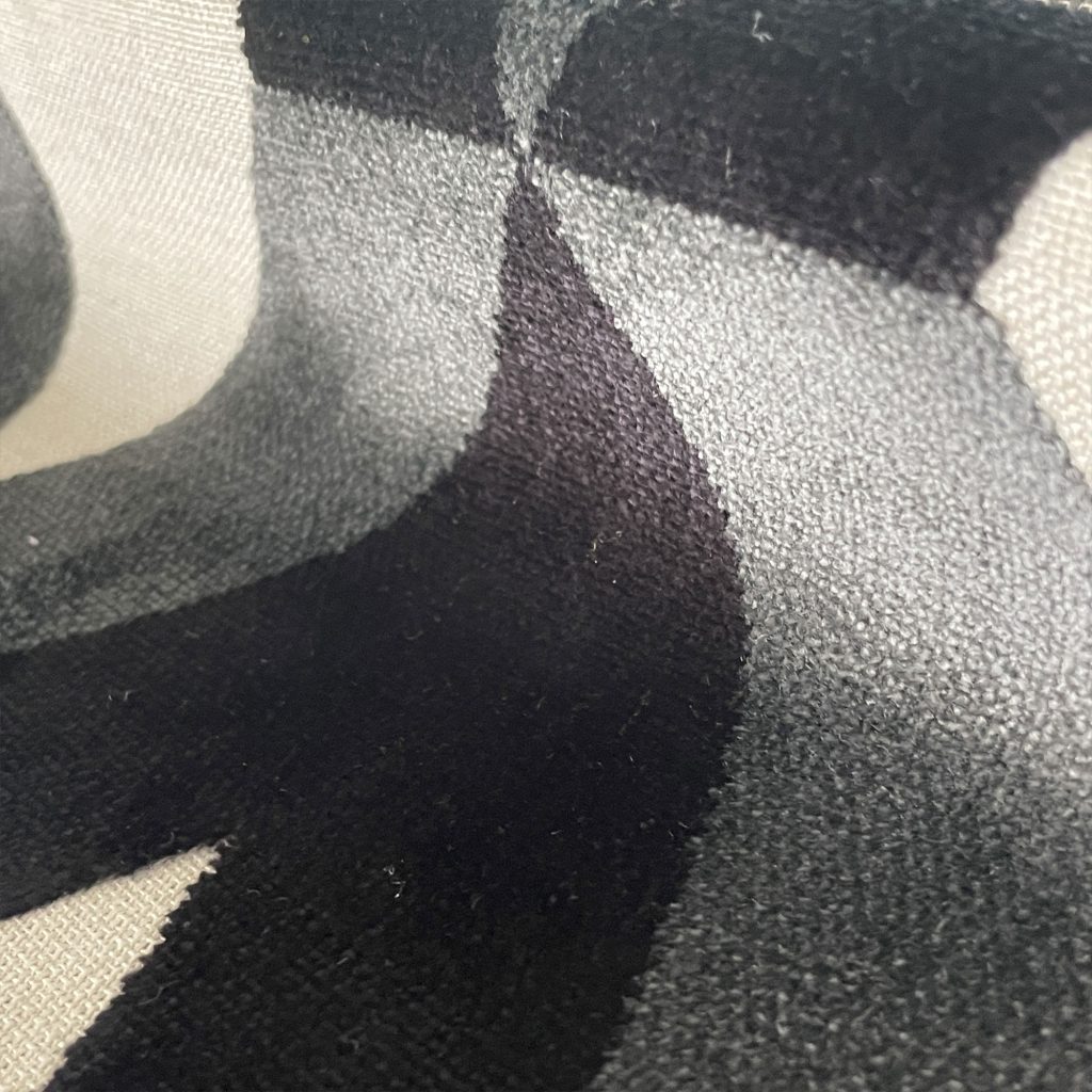 Das klassische Rautenmuster in einer kraftvollen Kombination aus Schwarz und Grautönen verleiht dem Stoff Tiefe, Dynamik und eine grafische Klarheit, die sowohl in modernen als auch in traditionellen Interieurs überzeugt. Der feine Glanz des Viskosesamts unterstreicht die exklusive Optik zusätzlich.