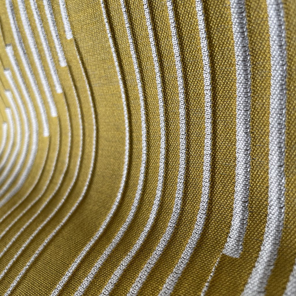 SUI ist aus 100 % Trevira CS gewebt – einer Faser, die dauerhaft schwer entflammbar ist. Die flammhemmende Eigenschaft ist tief in der Faserstruktur verankert und benötigt keine zusätzliche Ausrüstung. Dadurch eignet sich der Stoff besonders für den Einsatz in öffentlichen Bereichen, Hotels oder anspruchsvollen Wohnkonzepten. Gleichzeitig sorgt die Materialwahl für Pflegeleichtigkeit, Maßstabilität, Knitterarmut und hohe Lichtechtheit – mit brillanter Farbwirkung.