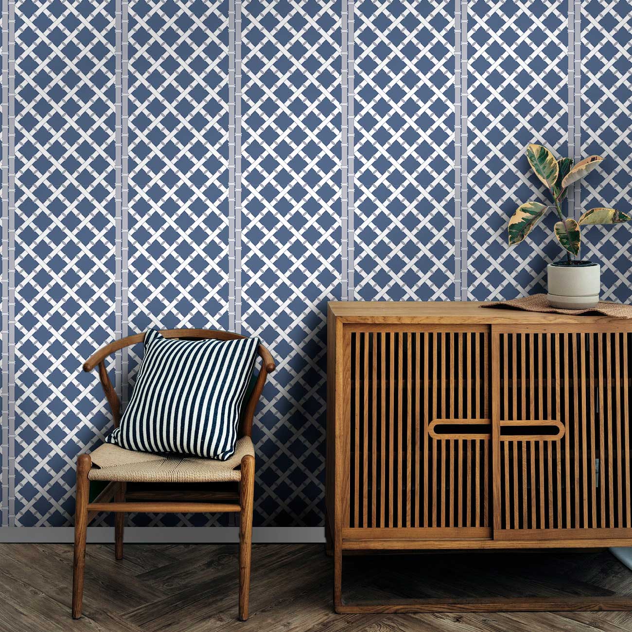 A stylishle non-woven wallpaper with bamboo lattice motif - clear, natural and architecturally appealing