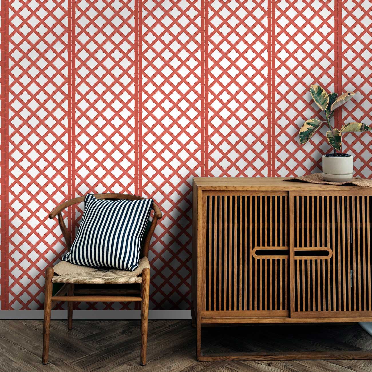 A stylishle non-woven wallpaper with bamboo lattice motif - clear, natural and architecturally appealing