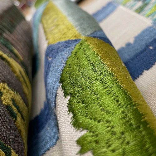 Mit 10.000 Scheuertouren eignet sich Yucatán ideal als Dekostoff, etwa für Vorhänge, Wandpaneele oder exklusive Kissenbezüge. Die Stickerei bringt Dynamik ins Interieur, ohne dabei überladen zu wirken – ein echter Blickfang in modernen wie klassischen Wohnstilen.