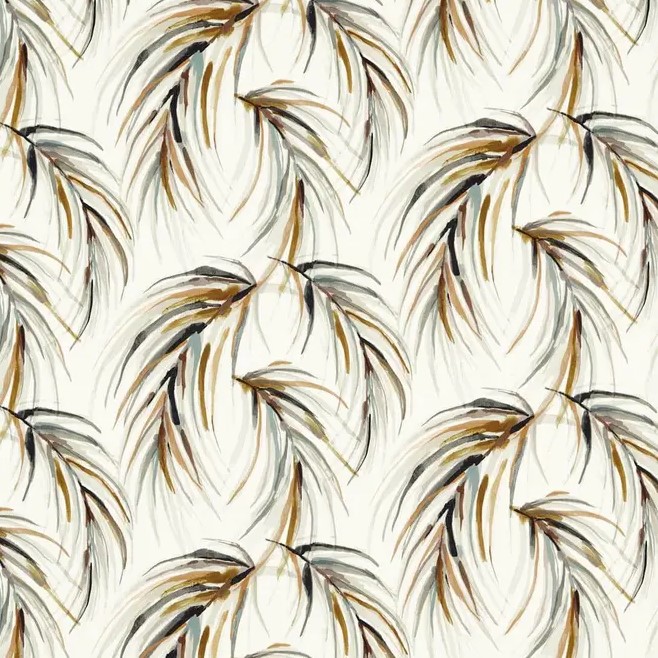 Dekorative, wetterfeste Stoffe für Vorhänge, Polster und Kissen – Alvaro von der Marke Harlequin. Hergestellt aus 100 % Polyester mit einer Breite von 136,7 cm. Dieser Stoff zeichnet sich durch sein malerisches Design aus, das an Palmenblätter erinnert und eine tropische Atmosphäre schafft. Seine hohe Festigkeit und Strapazierfähigkeit machen ihn zu einer ausgezeichneten Wahl für den Außen- und Innenbereich.