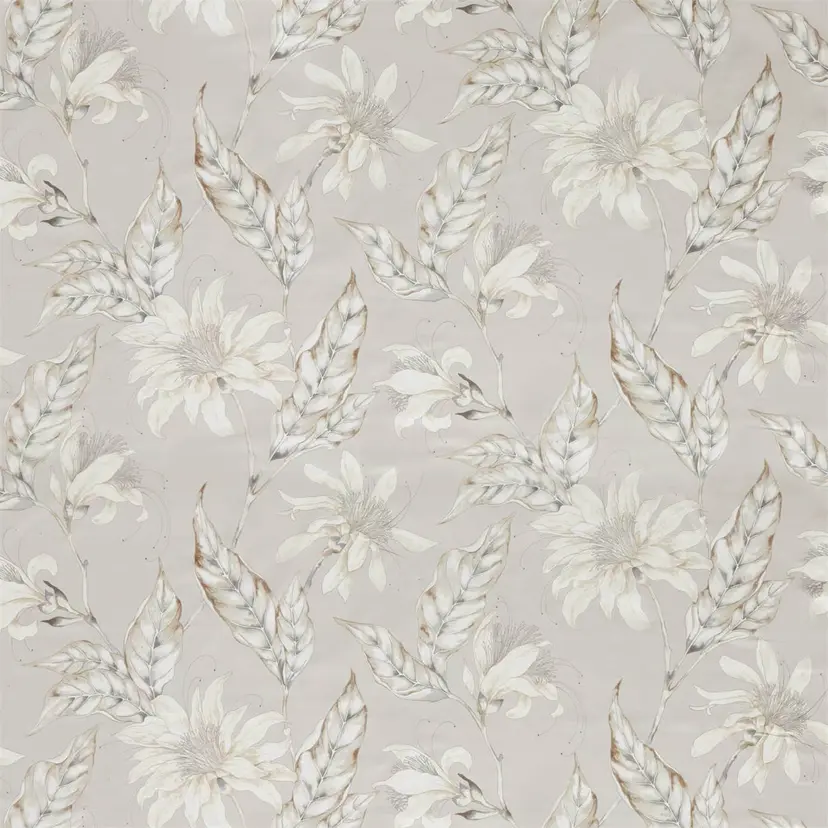 Dekorativer Stoff Ananda von Harlequin für Vorhänge, Polster und andere Textilprodukte, gefertigt aus 100 % Baumwolle mit einer Breite von 139,5 cm. Dieses Material ist mit einem einzigartigen Muster verziert, das in Handmalerei mit Feder und Aquarell stilisierte tropische Blumen zeigt. Der Stoff eignet sich hervorragend zur Gestaltung lebendiger und ausdrucksstarker Innenräume in jedem Stil und bringt dabei natürliche und kreative Akzente hinein.