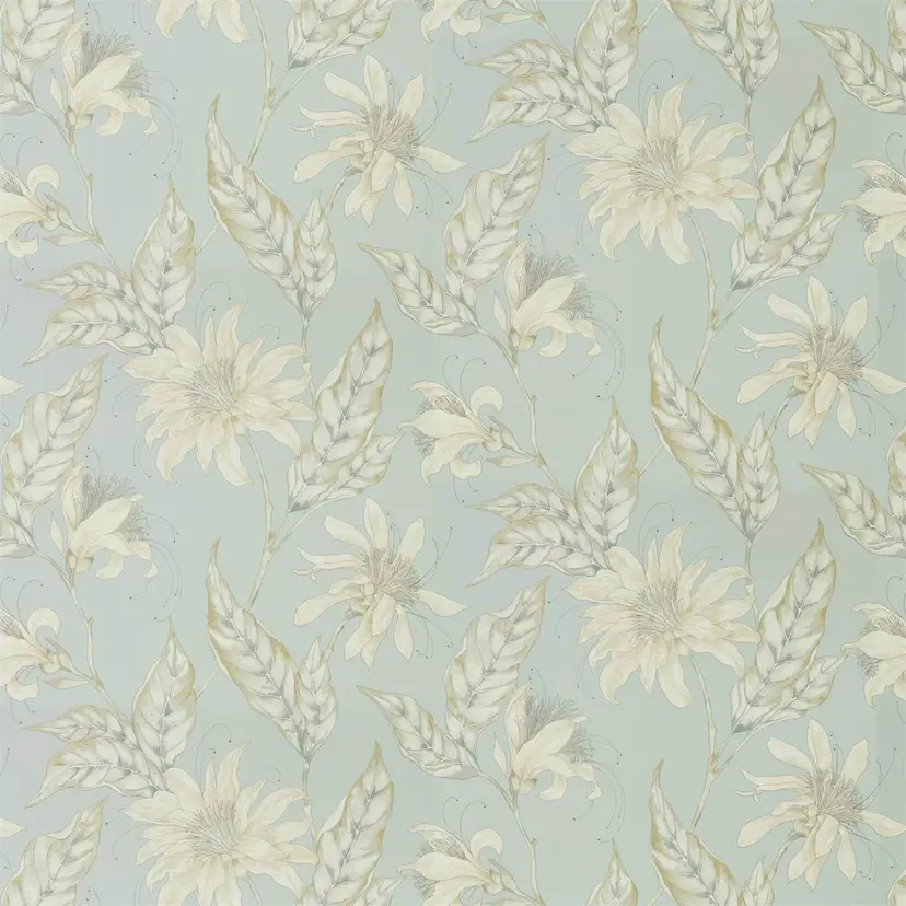 Dekorativer Stoff Ananda von Harlequin für Vorhänge, Polster und andere Textilprodukte, gefertigt aus 100 % Baumwolle mit einer Breite von 139,5 cm. Dieses Material ist mit einem einzigartigen Muster verziert, das in Handmalerei mit Feder und Aquarell stilisierte tropische Blumen zeigt. Der Stoff eignet sich hervorragend zur Gestaltung lebendiger und ausdrucksstarker Innenräume in jedem Stil und bringt dabei natürliche und kreative Akzente hinein.