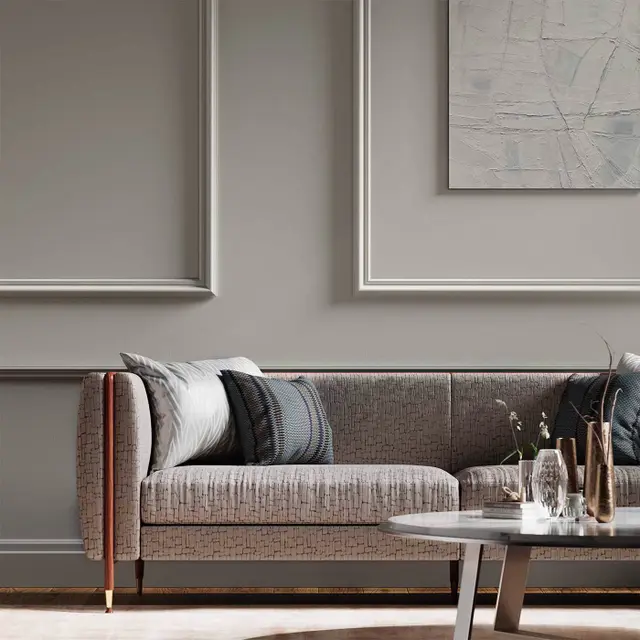 Die Farbpalette ist in ruhigen, natürlichen Tönen gehalten, die sich mühelos mit modernen wie auch klassischen Interieurs kombinieren lassen – von neutralen Wandfarben bis zu ausdrucksstarken Möbeln. Durch seine angenehme, dichte Struktur eignet sich der Stoff ideal für Vorhänge, Polsterarbeiten und dekorative Kissen.