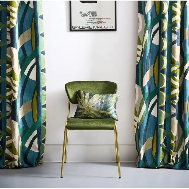 Der Stoff Atelier kombiniert ein modernes geometrisches Muster mit der feinen Textur von Baumwolle. Die Farbpalette vereint warmes Safran, tiefes Kohlegrau und frisches Wasabi, was eine dynamische und harmonische Atmosphäre im Raum erzeugt. Die dichte Baumwollstruktur sorgt für natürliche Weichheit, gute Drapierbarkeit und Langlebigkeit, wodurch der Stoff sowohl für Vorhänge als auch für Polster bestens geeignet ist.