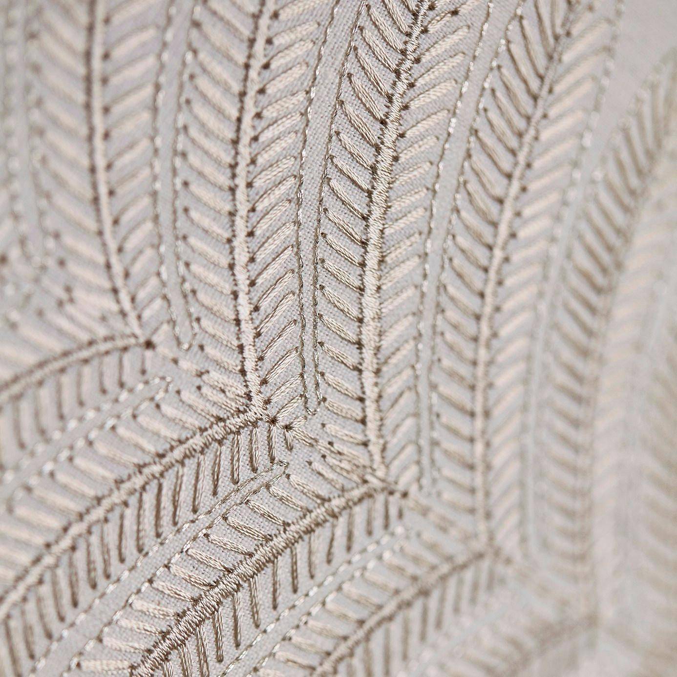 Der bestickte Stoff Lucielle ist mit einem modernen Blattmotiv verziert, das aus der Ferne eine sanfte geometrische Kurve bildet. Diese einzigartige Textur und die ruhigen Farbtöne machen den Stoff zur perfekten Lösung für stilvolle und harmonische Innenräume.