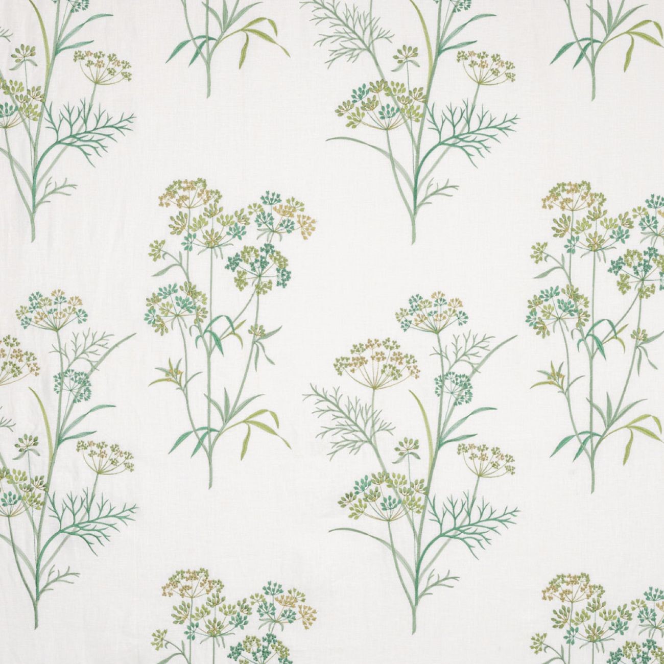 Angelica zeigt zarte organische Stickereien von Heckenblumen und Gräsern, die wunderschön in Sträußen auf frischem reinem Leinen angeordnet sind. Dieses hübsche botanische Design ist mit einer Vielzahl von feinen Stichtechniken exquisit umgesetzt worden.