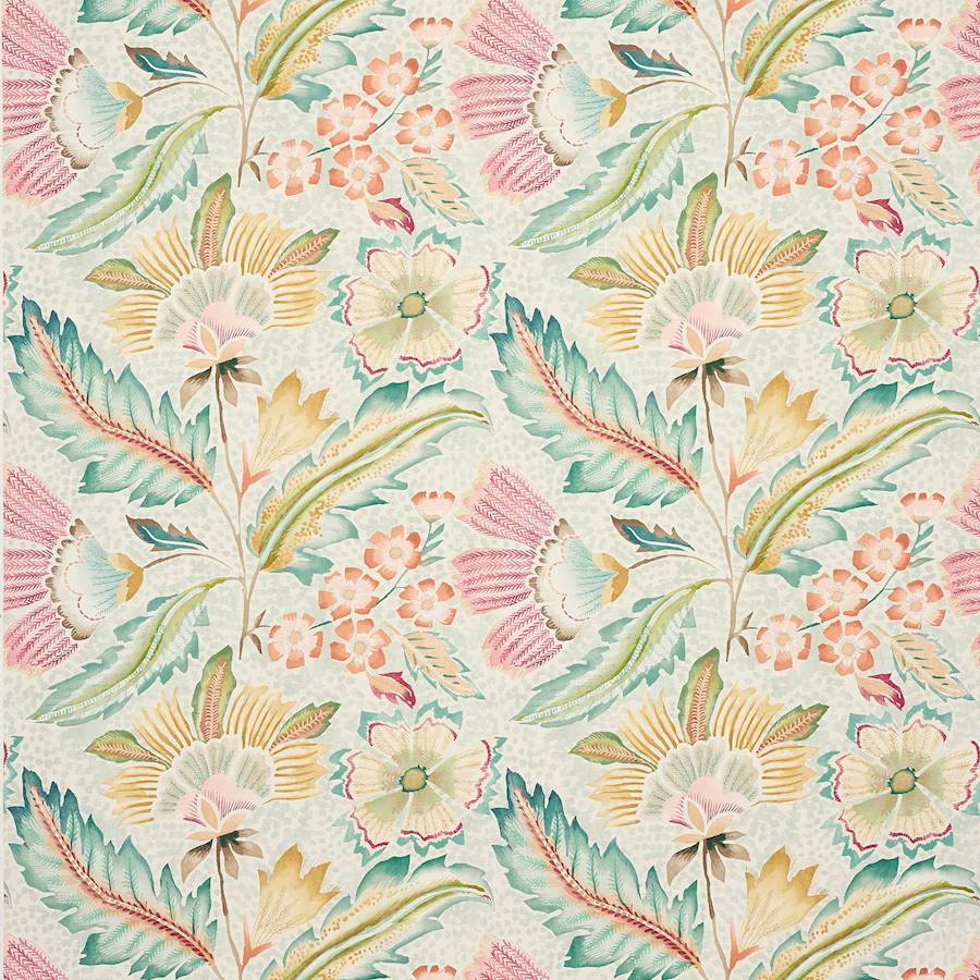 Der Stoff Jane Churchill Orla ist ein echter Farbrausch und kreative Explosion. Der eindrucksvolle großblumige Druck mit handwerklich gestalteter Ästhetik schmückt die Vorderseite auf Leinenbasis mit Baumwoll- und Polyamidanteilen. Die Blumenmotive, lebendige Formen und verstreute Details vermitteln Gefühl von Freiheit und künstlerischer Gestaltung.