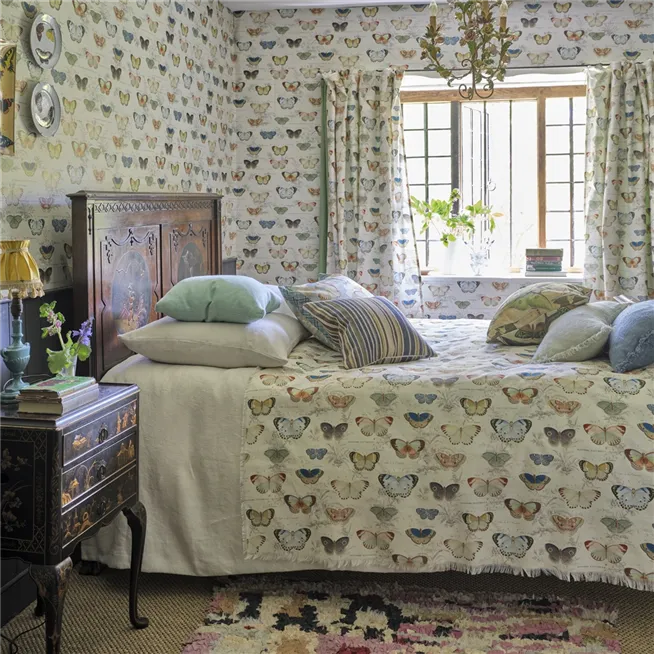 Der Stoff besteht aus 100% reiner Baumwolle, ist leicht strukturiert, waschbar und strapazierfähig mit 20.000 Scheuertouren. Perfekt geeignet für Vorhänge, Kissen, Jalousien und leichte Polsterbezüge. Für ein abgestimmtes Raumkonzept ist das Butterfly Study Design zudem als Tapete in vier verschiedenen Farben erhältlich.