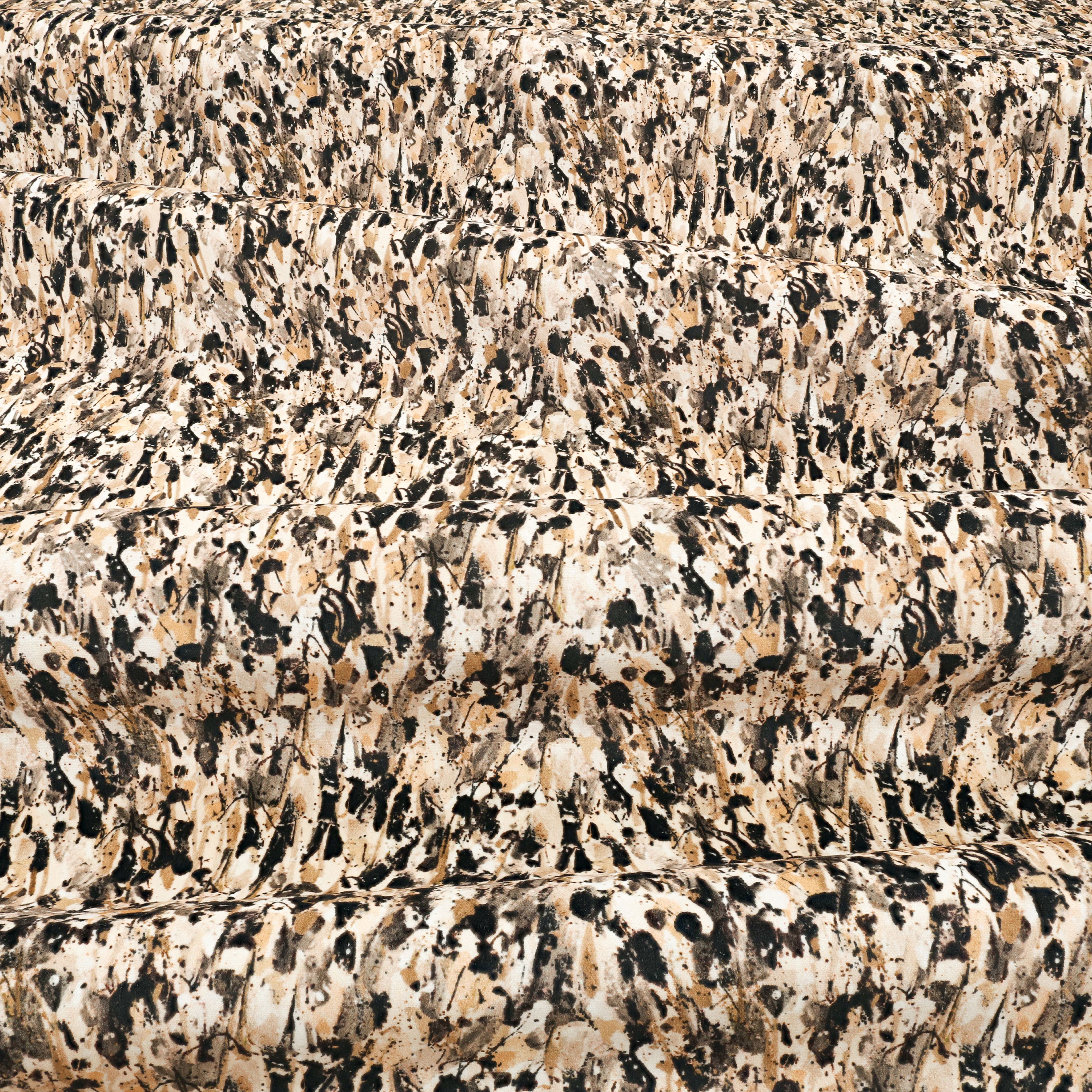 Dieses abstrakte Design war ursprünglich eine handgemalte Collage, die aus einer Vielzahl von Schichten bestand. Der Gesamteffekt der Collage ist voller Bewegung und Energie, als ob die Blumen in einer frenetischen Darbietung ausbrechen würden. Der Digitaldruck auf glattem Samt sorgt für maximale Wirkung und der weiche Flor in Verbindung mit der Fülle der Farben für seine Unwiderstehlichkeit.