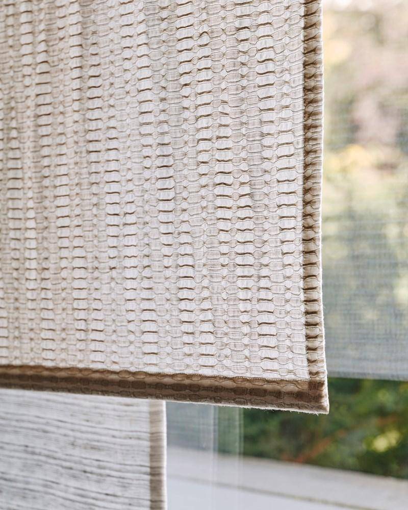 Dieser zweifarbige Leinentuchstoff ist fein gearbeitet und dennoch einfach zu handhaben. Er zeichnet sich durch eine komplizierte Webart aus, die ein wellenförmiges Muster erzeugt, das an große Landschaften erinnert.