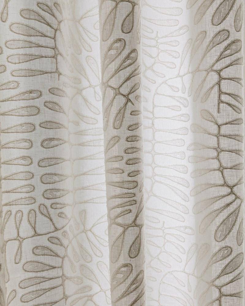 Dieser Stoff aus einer luxuriösen Leinen-Baumwoll-Mischung besticht durch sein elegantes, von der Natur inspiriertes Design. Abstrakte, grafische Palmen verflechten sich anmutig und werden durch aufwendige Stickerei- und Applikationstechniken zum Leben erweckt. Das Ergebnis ist ein Stoff mit außergewöhnlicher Weichheit, einem schönen Faltenwurf und einer fesselnden Textur.