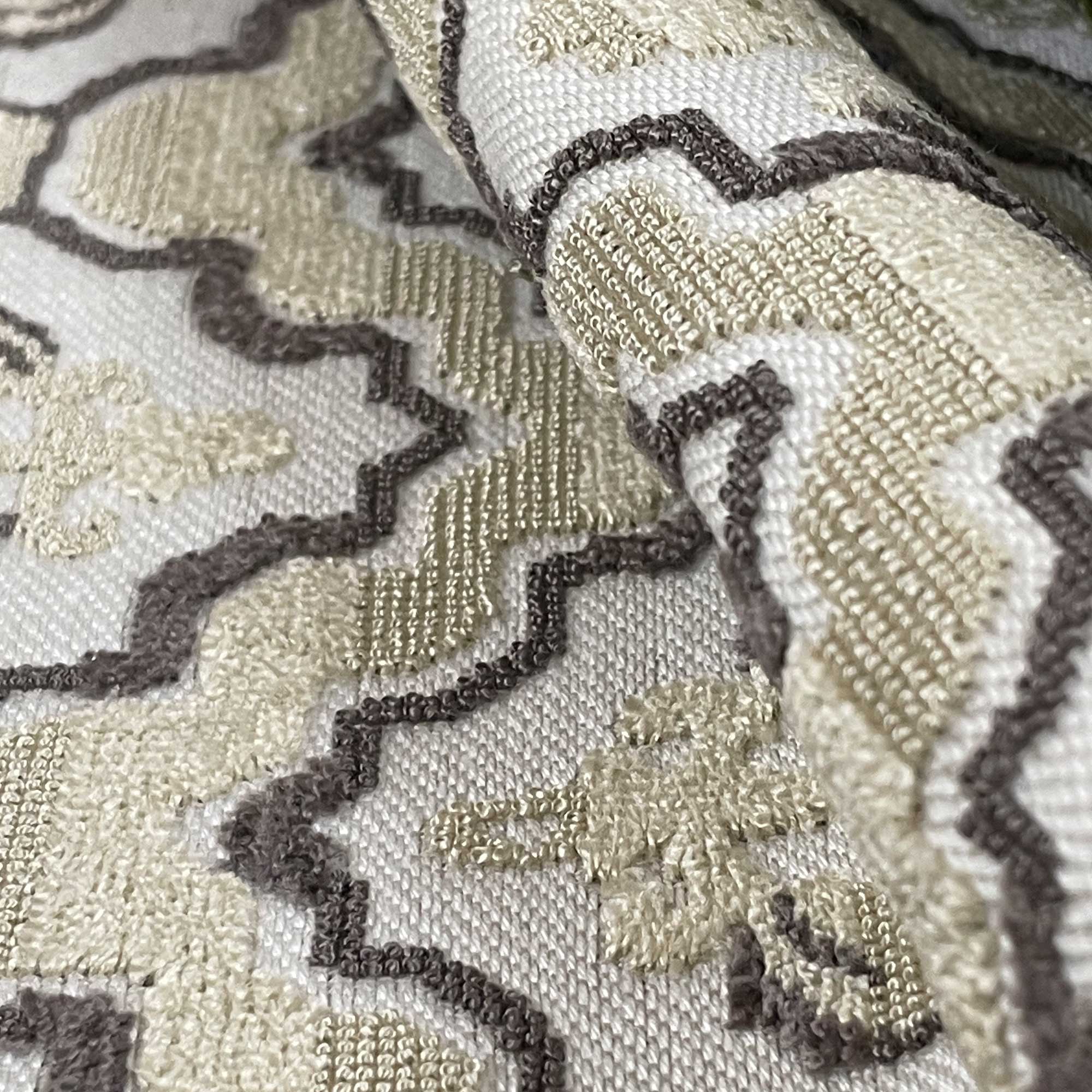 Durch den Einsatz unterschiedlicher Webtechniken entsteht eine vielschichtige Oberfläche mit Tiefe und Textur. Die sich abzeichnenden, arabesken Muster wechseln zwischen Licht und Schatten, wirken fast dreidimensional und verleihen dem Raum eine feine Dynamik. Ob auf einem klassischen Sessel oder als dekorativer Vorhang – Legio wirkt sowohl dezent als auch ausdrucksstark.
