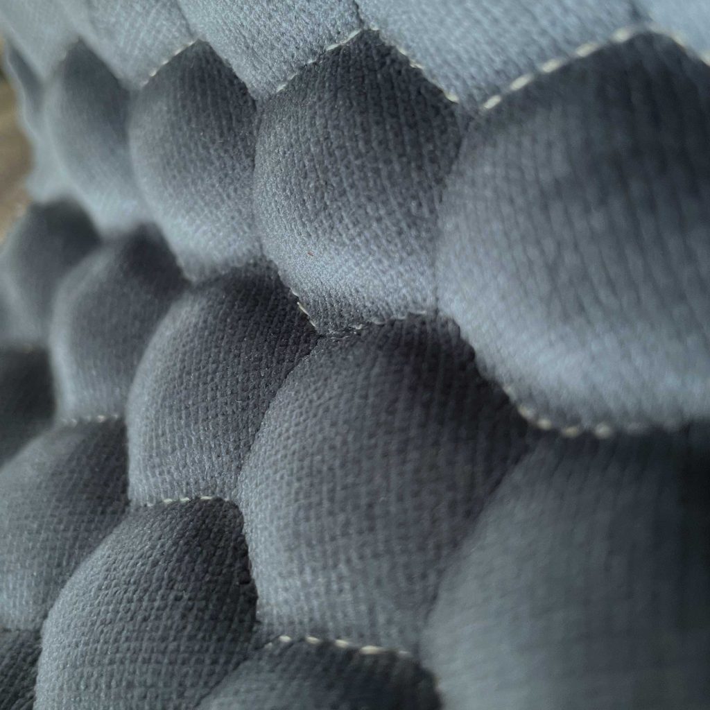 Der Deko- & Polsterstoff Quercus aus der Kollektion von Lorenzo Castillo steht für moderne Eleganz mit klassischem Twist. Gefertigt aus 92 % Polyester und 8 % Baumwolle, kombiniert dieser Stoff eine weiche Samtoberfläche mit einem klar strukturierten Hexagon-Steppmuster. Durch die markante Textur entsteht ein spannender, geometrischer Look mit hoher optischer Tiefe.