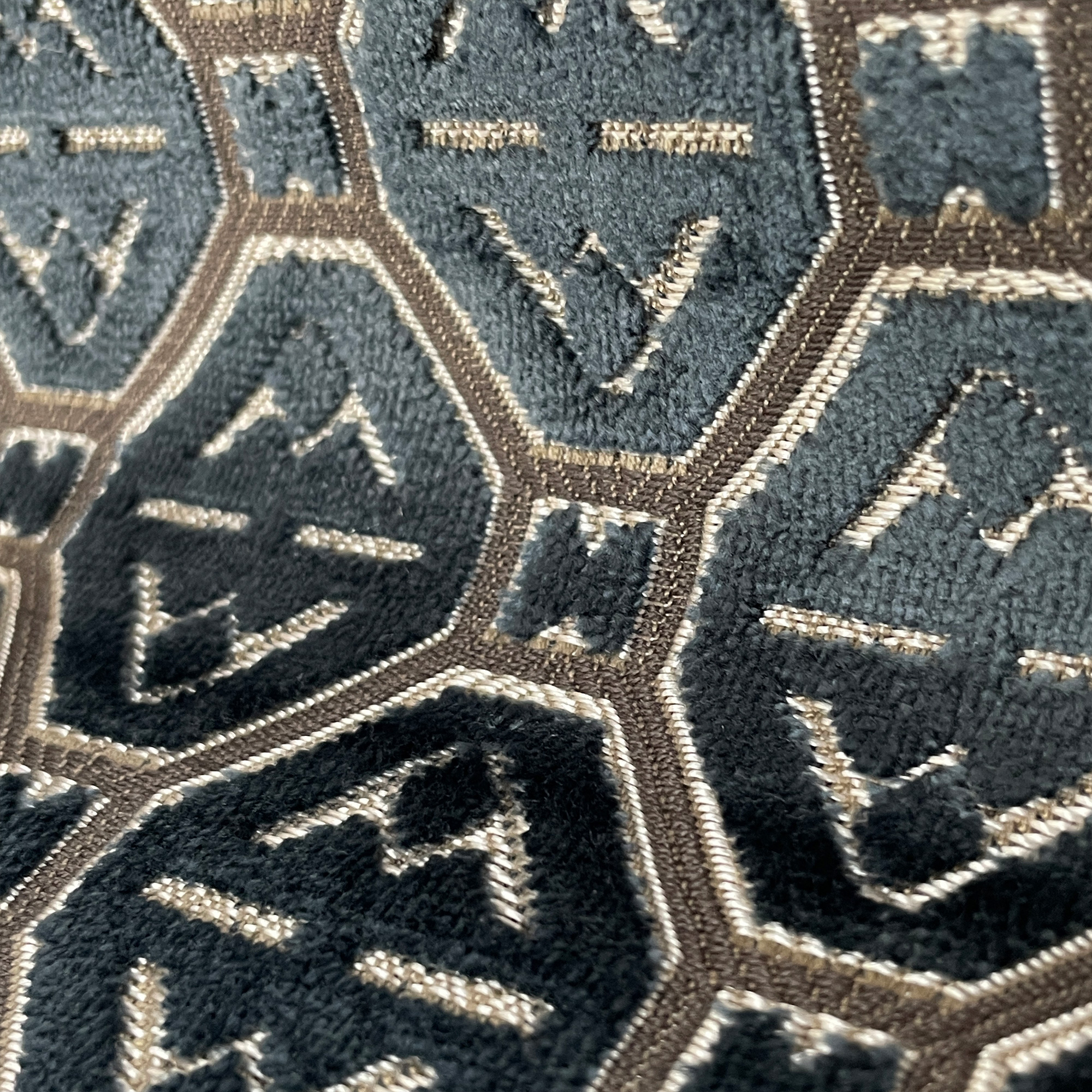 Der Stoff Calabrez von Lorenzo Castillo ist ein luxuriöser Deko- und Polsterstoff, der durch seine aufwendig gewebte geometrische Struktur Tiefe und Eleganz erzeugt. Die fein abgestimmten Garnfarben verleihen dem edlen Viskosesamt eine besondere Brillanz. Exklusiv erhältlich bei Villakontor® online.