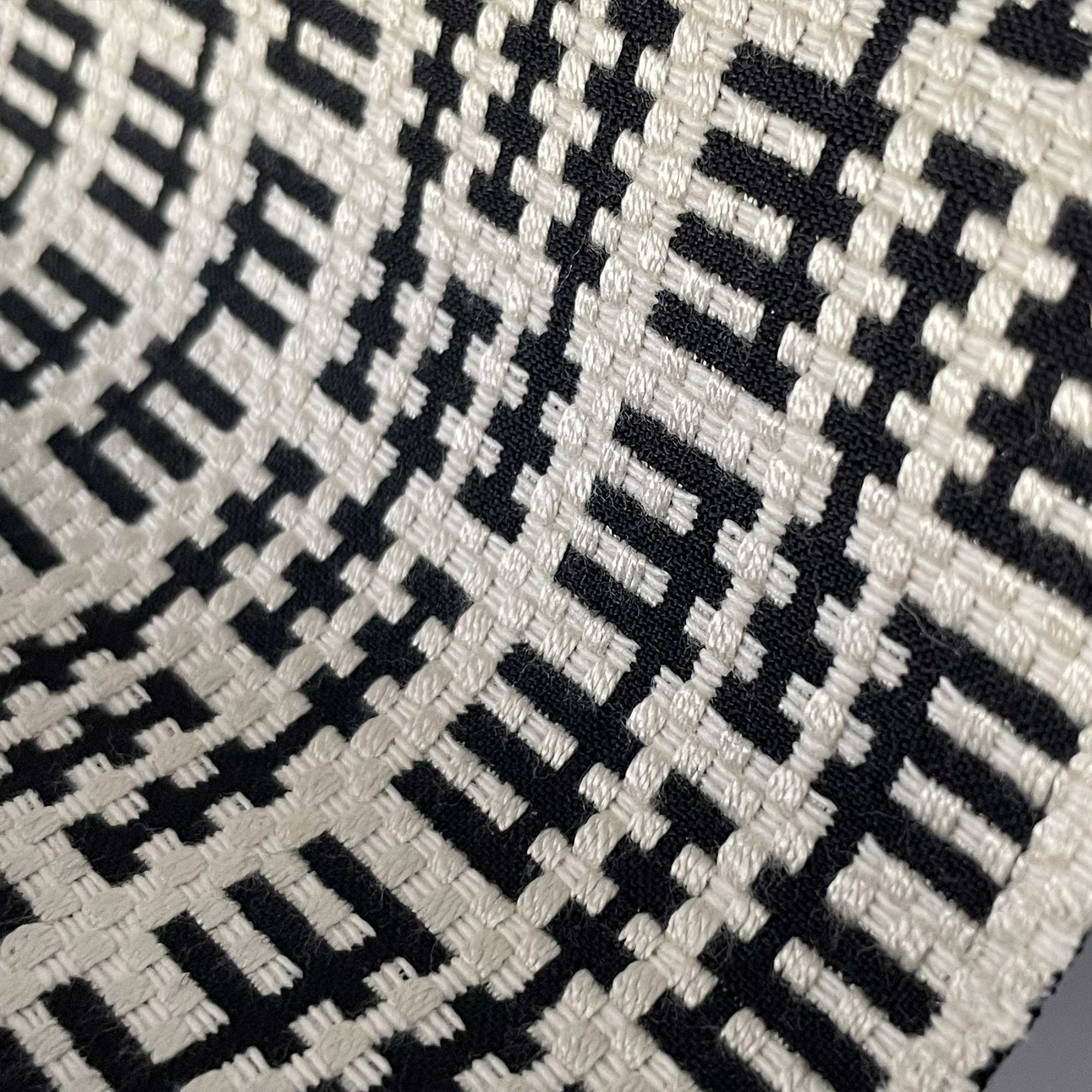 Das geometrische Muster wirkt besonders gradlinig und strukturiert, wobei die feinen Strukturen durch gekonnte farbliche Akzente stilvoll kombiniert werden. So entsteht ein moderner und zugleich zeitloser Look, der sich hervorragend für anspruchsvolle Polsterarbeiten eignet.