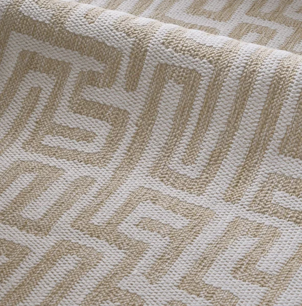Paul Peint von MISIA Paris ist ein dekorativer Outdoor-Stoff mit einer Breite von 136 cm, hergestellt aus hochwertigem, hoch technologischem 100% Polypropylen Lösung gefärbt. Das lebendige, ornamentale Design, inspiriert von griechischen Kurven, verleiht eine Note von Raffinesse und Leichtigkeit, die auf hoher Qualität hinweist.