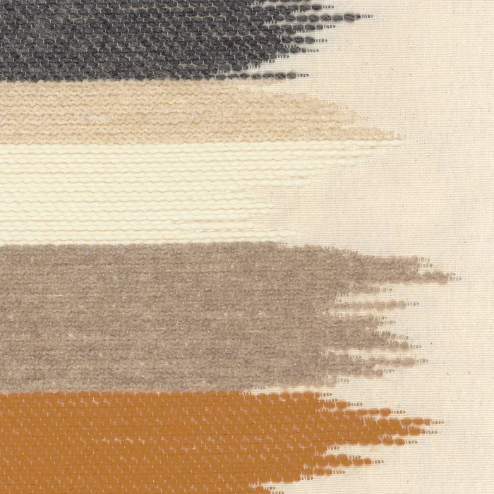 Große Streifen im Ikat-Stil mit einzigartigen Farbtönen – “Greige” und “Copper” – machen den Stoff besonders, während die Zusammensetzung aus 66 % Baumwolle, 21 % Polyester, 7 % Schurwolle und 6 % Acryl Haltbarkeit und Langlebigkeit garantiert. Mit 146 cm Breite und 10.000 Martindale-Zyklen ist Qualität und Praxistauglichkeit sichergestellt.