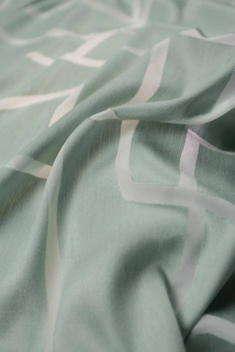 Alexis continues the era of the famous nya nordiska burnouts. The elegant, softly flowing decorative fabric with its wonderful feel is available in two versions: Alexis Night enchants in eleven colors with large, graphic shapes and a fascinating interplay of opacity and transparency. Alexis Day is the transparent counterpart in delicate shades of white. The fabric has a width of 310 centimetres and is therefore perfect for large-scale processing.