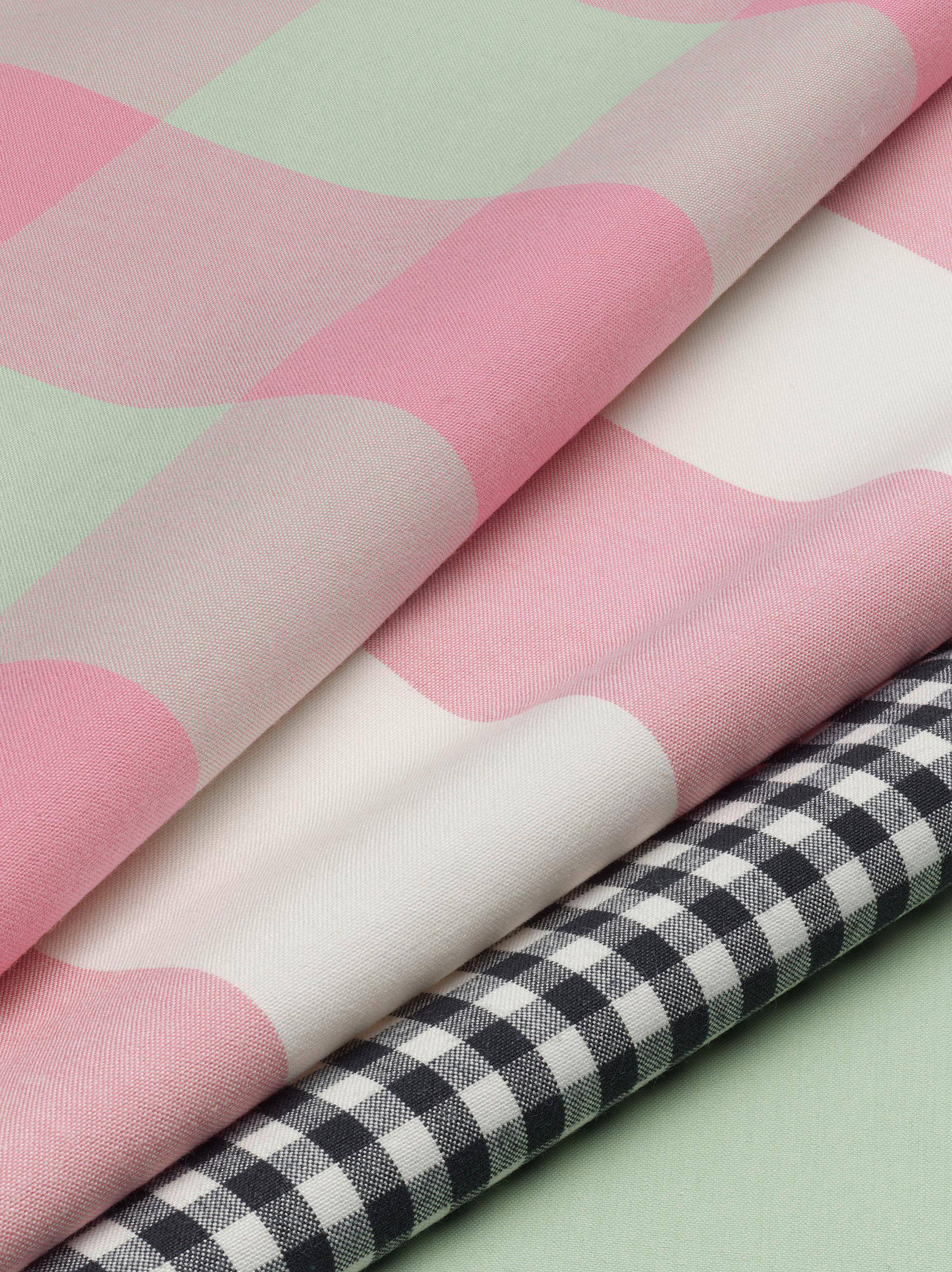 In addition to the Jota, Kappa and Alpha 2.0 stripe designs, Nya Nordiska has developed a check version of each fabric that is adapted to the width of the stripes: Identical to the stripe series in terms of color palette and yarn quality, the hard-wearing and washable checks Jota, Kappa and Alpha-Check 2.0 made of 100% cotton open up versatile combination possibilities for upholstery, decoration and placemats, also in combination with Delta, Mega and Zeta 2.0.