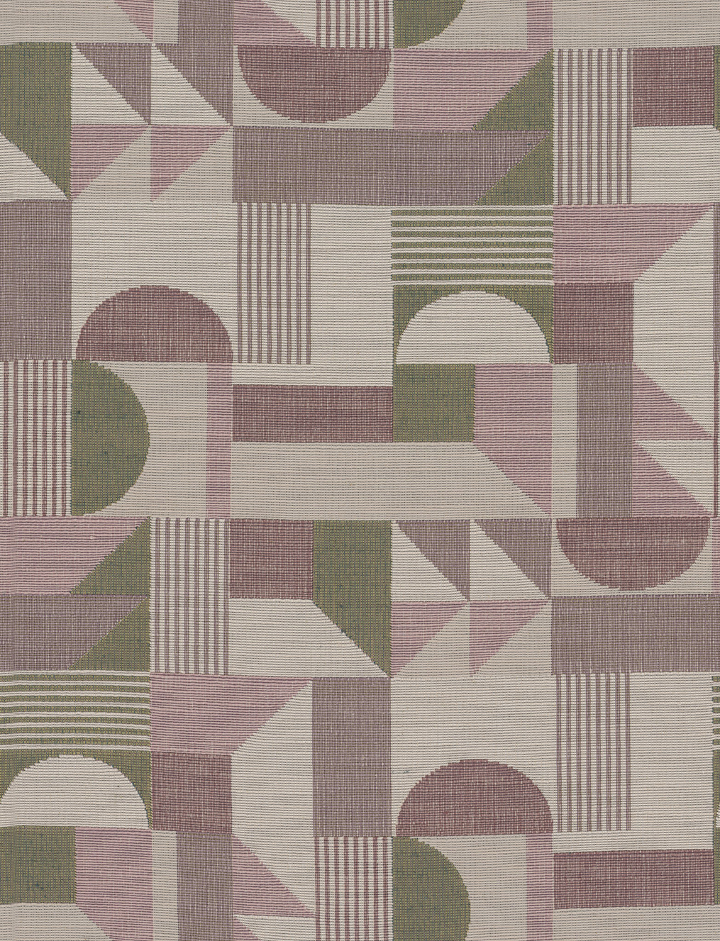 Ground plan of the dawn. Olmo combines the color scale of the sunrise with a geometric mosaic, giving the Aurora collection its signature in the upholstery fabric segment. As a modern interpretation of a classic tapestry fabric, it colors its cubic contrasts with warm nuances from four color worlds. Mediterranean sienna, earthy tabac, floral orchid and fashionable bordeaux each unfold their very own charm on a heavy linen-cotton fabric with a grainy surface.