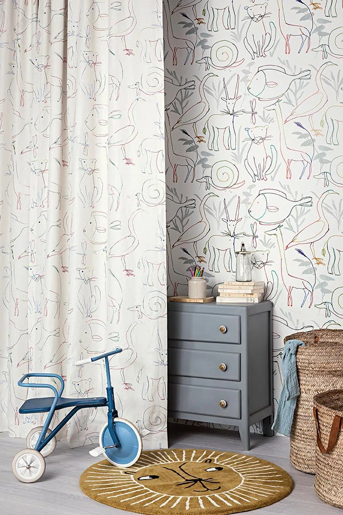 Dank seiner robusten Eigenschaften eignet sich Bestiaire Enchanté hervorragend für moderne, kreative und minimalistische Interieurs, in denen textile Elemente nicht nur funktional sind, sondern auch eine künstlerische Aussage treffen. Ob in Kinderzimmern, Studios, Wohnbereichen oder Akzentflächen — dieser Stoff bringt Persönlichkeit und Stil in jedes Projekt.