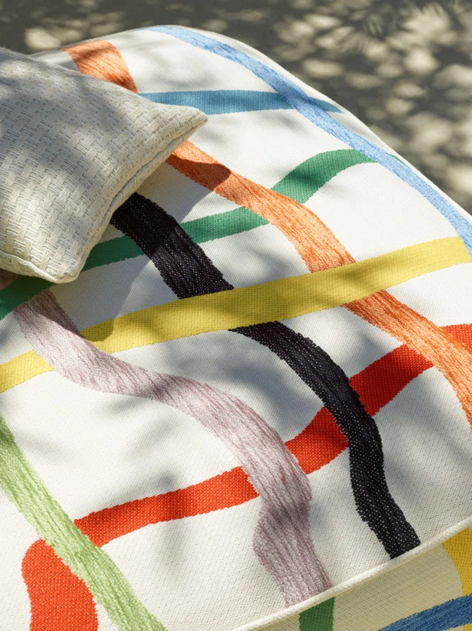 Im Online-Shop von Villakontor finden Sie Pierre Frey Stoffe, darunter auch Crossroads – perfekt, um sowohl drinnen als auch auf Terrassen eine behagliche Atmosphäre zu schaffen.