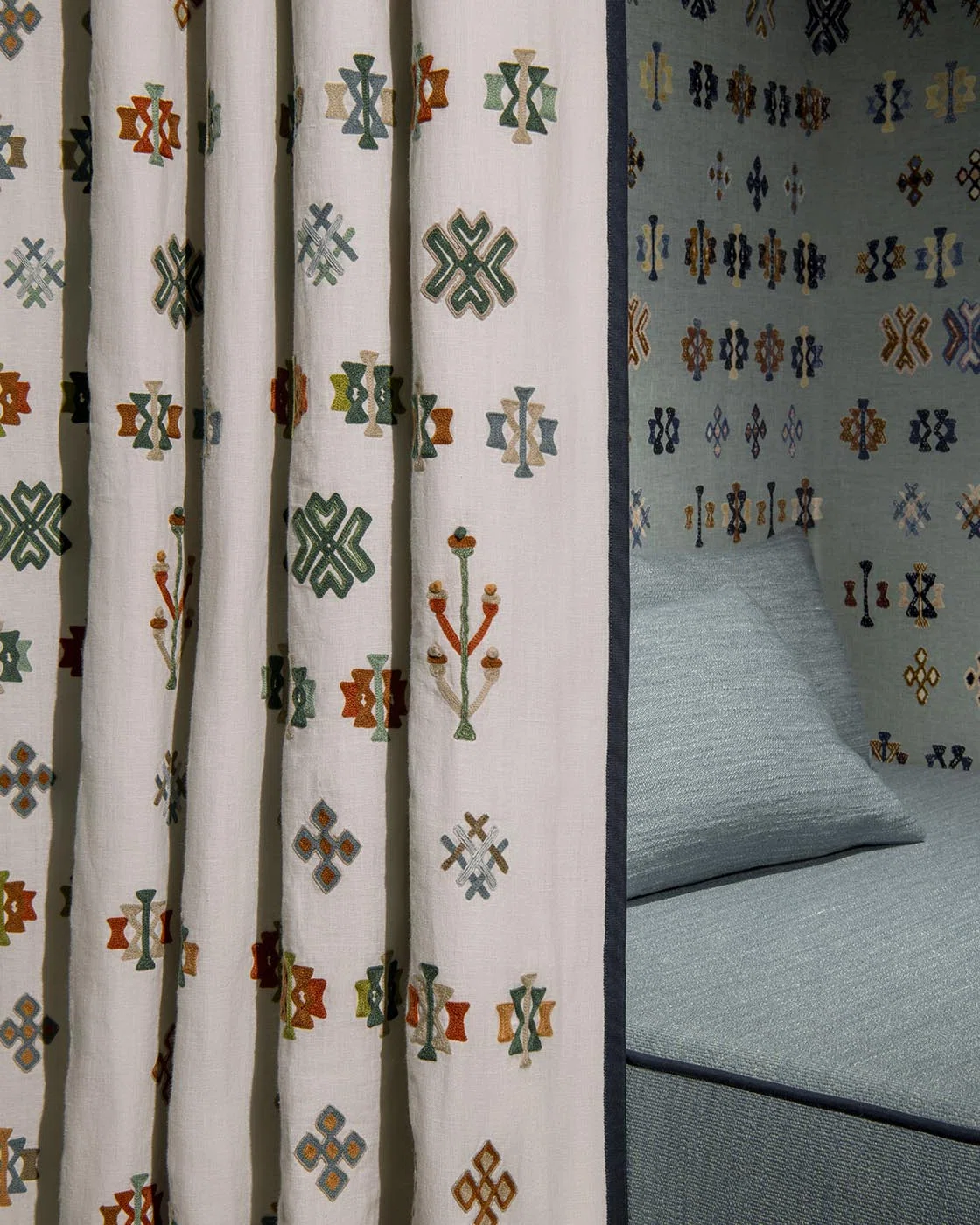 Der Stoff Kasbah besticht durch sein raffiniertes, orientalisch anmutendes Muster, das jedem Raum Tiefe und eine geheimnisvolle Note verleiht. Jedes Designelement ist sorgfältig gearbeitet und ergibt einen harmonischen und optisch ansprechenden Stoff. Eine reiche Palette eleganter Farbtöne bietet für jeden Stil – von klassisch bis modern – die perfekte Lösung. Wählen Sie zwischen tiefen Erdtönen, sanften Naturfarben oder kräftigeren Akzentfarben, um Ihrem Raum eine individuelle Note zu verleihen.