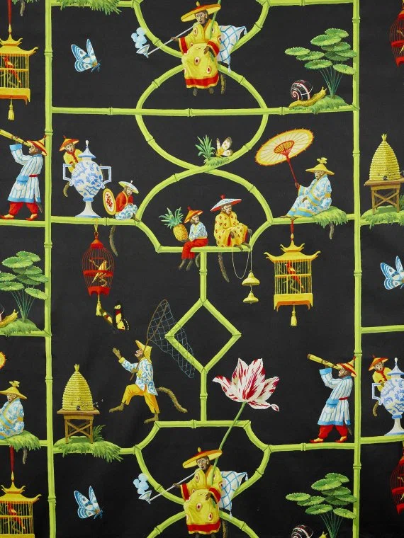Der Dekor- und Polsterstoff Les Singes Savants von Pierre Frey vereint künstlerische Grafik, elegante Linienführung und französisches Textilhandwerk auf höchstem Niveau.