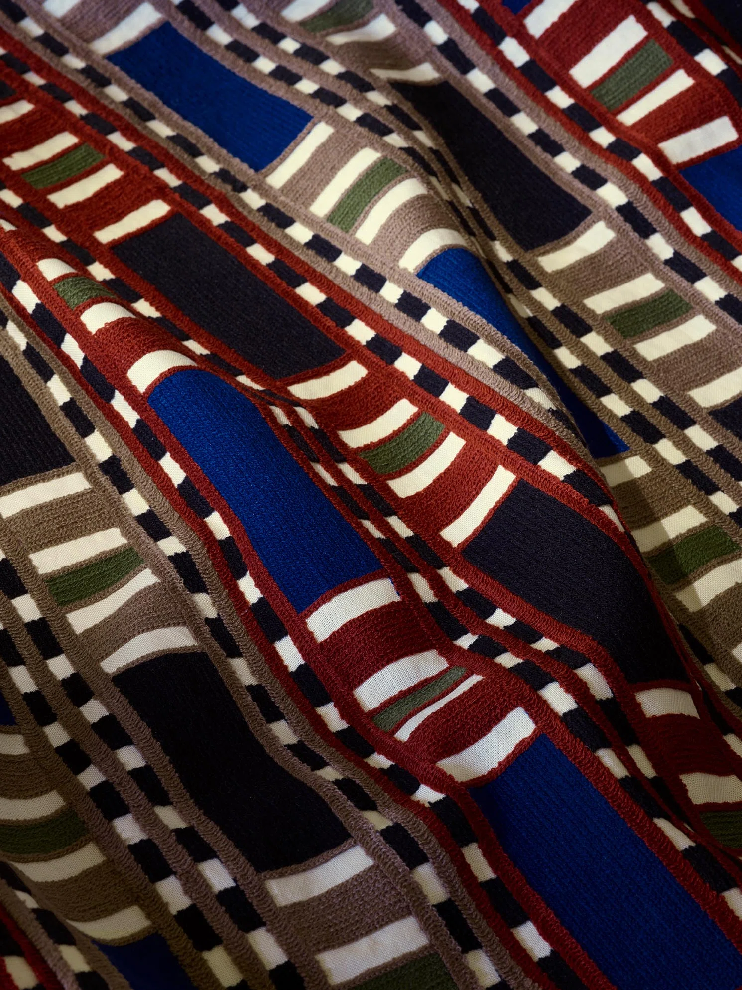 Die Zusammensetzung des Stoffes – 55 % Wolle, 45 % Leinen; Stickerei 100 % Wolle – sorgt für Festigkeit, Verschleißfestigkeit und eine ausdrucksstarke Textur. Dadurch eignet sich Limpopo gleichermaßen gut für Möbelbezüge, Vorhänge, Kissen und Dekorationselemente und behält seine Schönheit und Struktur über viele Jahre hinweg.