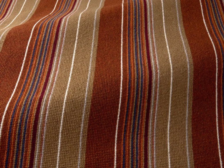 Die Zusammensetzung des Gewebes – 52 % Wolle, 30 % Baumwolle, 10 % Polyester und 8 % Polyamid – sorgt für Strapazierfähigkeit, Verschleißfestigkeit und angenehme Haptik. Dank dieser Faserkombination behält das Gewebe über viele Jahre hinweg seine Farbsättigung und Musterklarheit. Die Stoffstreifen verlaufen parallel zu den Kanten, was das Zuschneiden erleichtert und die architektonische Struktur des Designs unterstreicht. Für ein optimales Ergebnis wird empfohlen, eine verstärkte Naht zu verwenden, um ein Ausfransen der Nähte bei intensiver Nutzung zu verhindern.