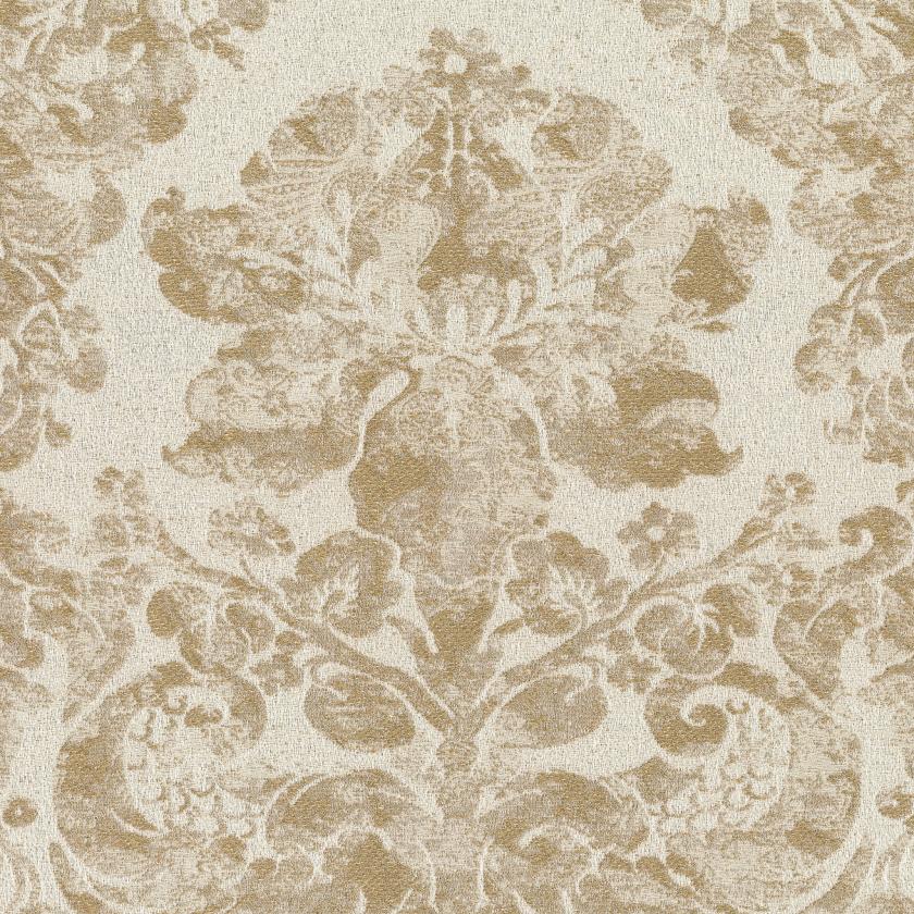 Barry Lyndon von Rubelli Venezia basierend auf einem klassischen Motiv aus dem 18. Jahrhundert, das mit anderen Motiven zeitgemäß umgestaltet wurde. Ein Muster im Muster, verziert mit erhabenen Metalleffekten für einen schwer entflammbaren Jacquard zur Dekoration. Ein typischer Rubelli Dekostoff der an die lange Tradition des Familien-Unternehmes aus Venedig anknüpft.